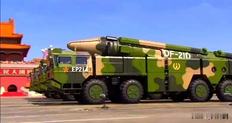 - 21导弹:中国海防的“战略重锤”东风 - 21(DF - 21)作为我国自主研发的第二代中程地地战略弹道导弹,在全球军事舞台上独树一帜,更是全球首款反舰弹道导弹,堪称中国海防的“战略重锤”。 它诞生于上世纪70年代末,历经多年钻研,1985年成功试射,1989年正式定型。东风 - 21弹长10.7米,弹径1.4米,起飞重量约18吨,最大射程达1800公里,可携带1枚600公斤的核弹头或常规弹头,具备强大的毁伤能力。 东风 - 21的“杀手锏”当属其反舰能力。东风 - 21D作为反舰型号,飞行末端能灵活机动变轨,如鬼魅般突破敌方舰艇严密的防空反导系统,直击航母等大型水面舰艇,彻底改变了传统海战规则,被外界冠以“航母杀手”的威名。 而且,它采用固体燃料发动机,发射准备时间大幅缩短,机动性极强,可快速部署、灵活发射,极大提升了战场生存能力。东风 - 21不仅是中国海防的中坚力量,更是维护国家海洋权益与战略安全的坚实后盾。