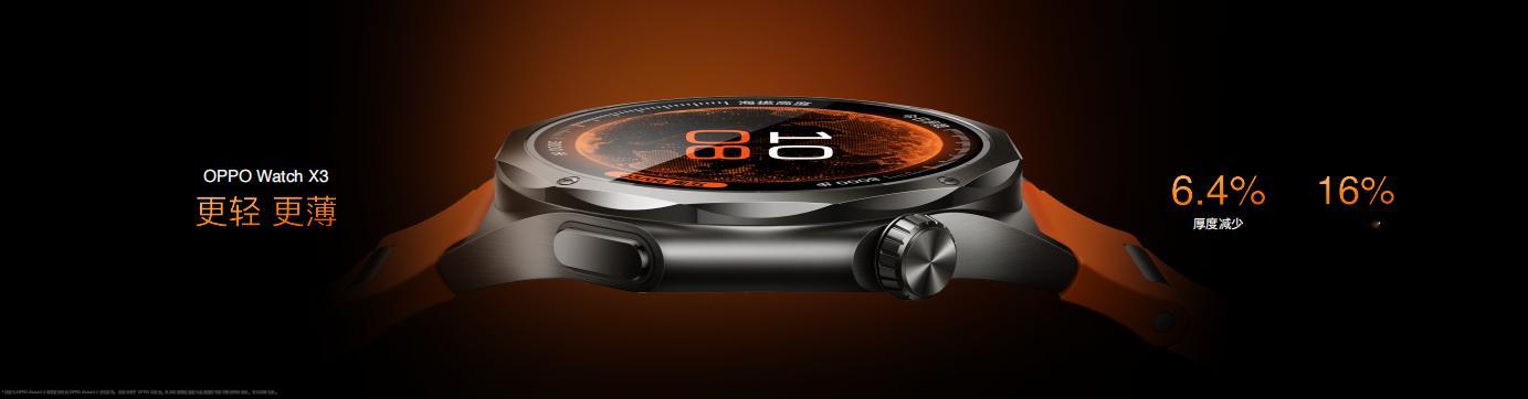OPPO Watch X3全钛旗舰,搭载航天级TC4钛合金,十二边形切割工艺,单表体仅43g、厚10.99mm,轻薄无感不卡袖口,配竹节表带与蓝宝石水晶玻璃,3000尼特亮度户外清晰,有引力黑、无限钛、寰宇星橙三色。健康功能重磅升级:无感高血压风险评估联合阜外医院临床验证,6个月干预可将血压控制率从33%提升至55.28%,支持鼾声记录的睡眠呼吸暂停筛查获二类医疗器械认证。售价:引力黑2599元国补后2209.15元无限钛/寰宇星橙2799元国补后2379.15元