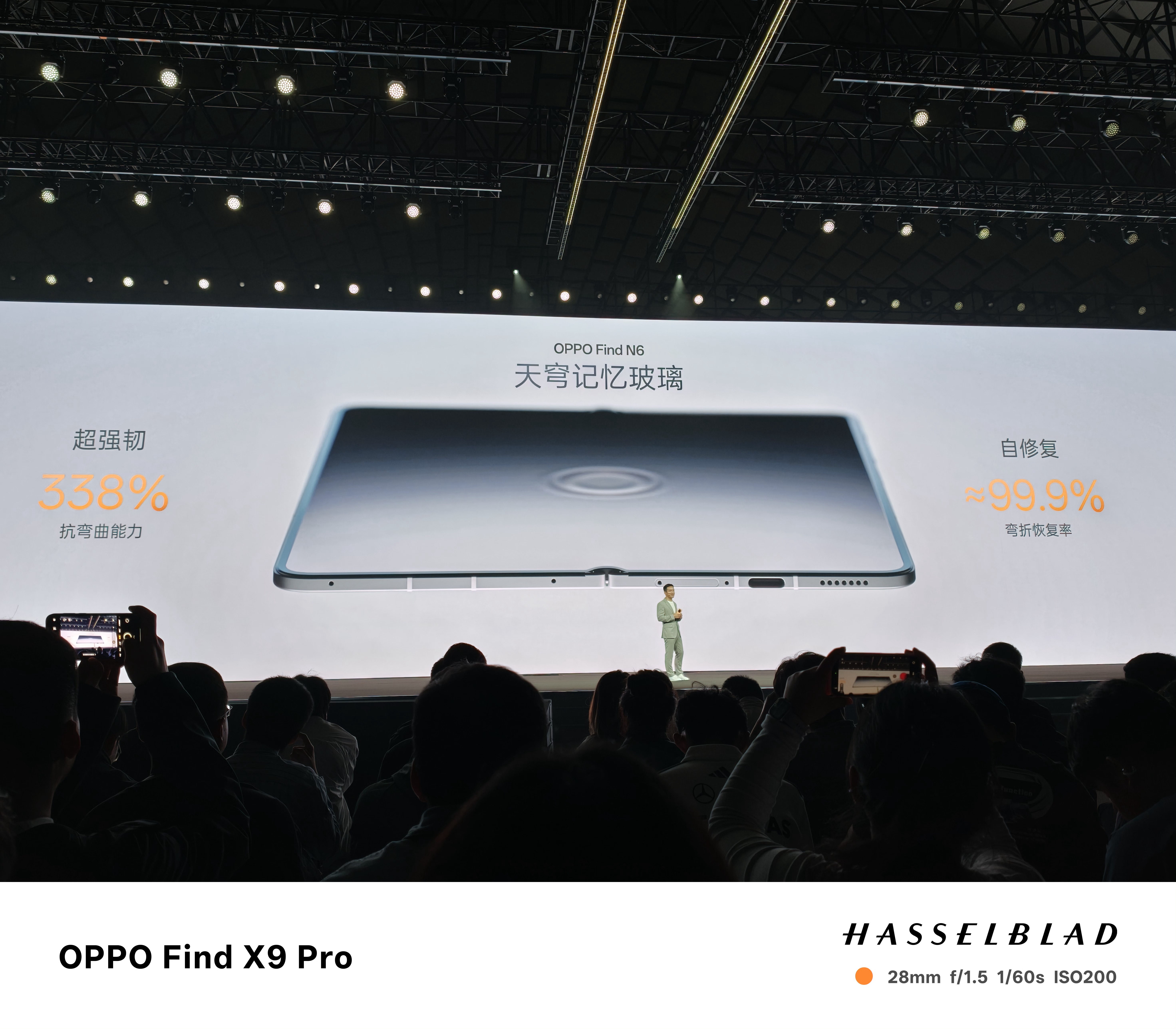 OPPO Find N6除了新铰链技术之外,还用了一块全新的天穹记忆玻璃基材,可以实现99%的弯折修复率,所以肉眼看起来实现了几乎无折痕的观感。