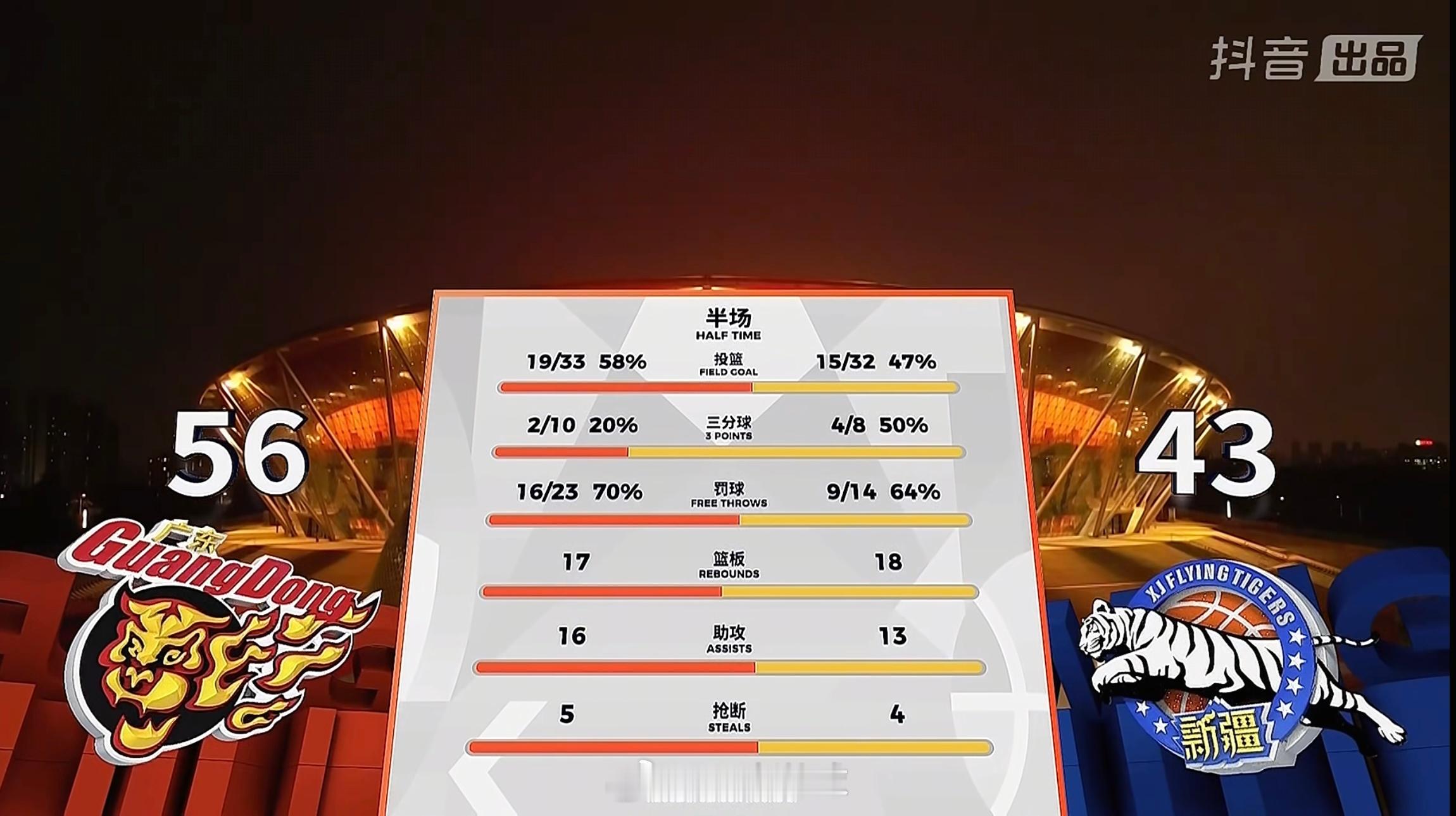 半场比分:广东男篮56:43新疆男篮广东男篮vs新疆男篮新疆男篮阿才说球CBA广东宏远
