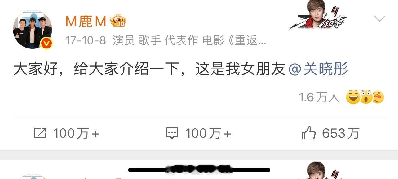 这不就是点鹿晗和关晓彤吗?当年微博瘫痪,脱粉挂了一周的热搜两年后鹿晗商业价值开始