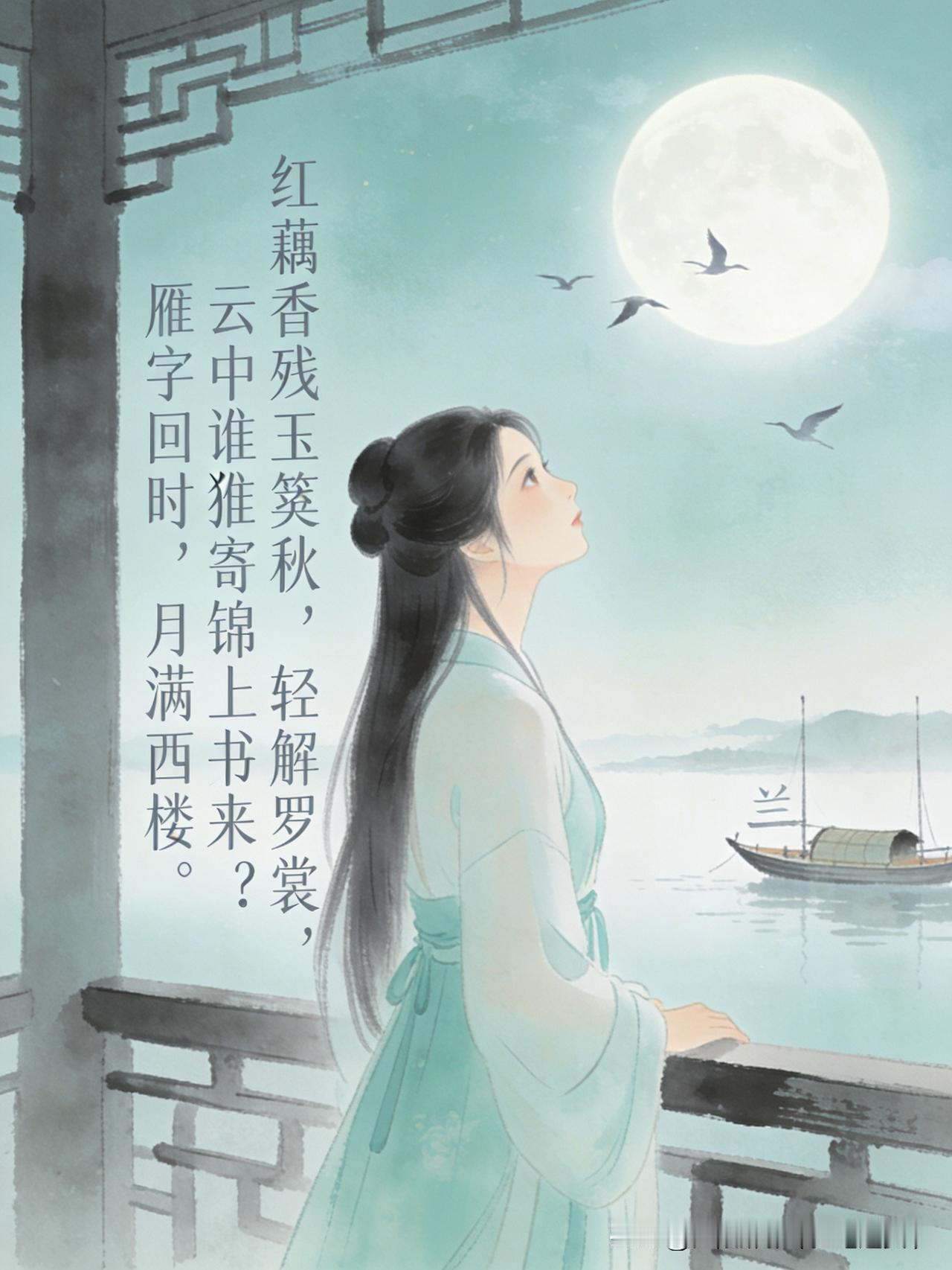 李清照——千古第一相思词,送给此刻的你。 红藕香残玉簟秋,轻解罗裳,独上兰舟