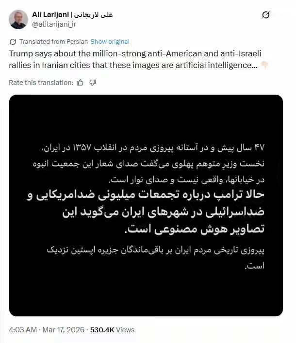 以色列散布伊朗高官拉里贾尼被袭身亡的消息,让本已站在支持伊朗一方的正义力量心头一颤。如果拉里贾尼遇害,这将是伊朗的重大损失,拉里贾尼在哈梅内伊逝世后领导了伊朗反击美国以色列的重大行动。我们不禁要问,狂妄的内塔尼亚胡政府何时才能受到伊朗伊斯兰革命卫队的强力打击呢?