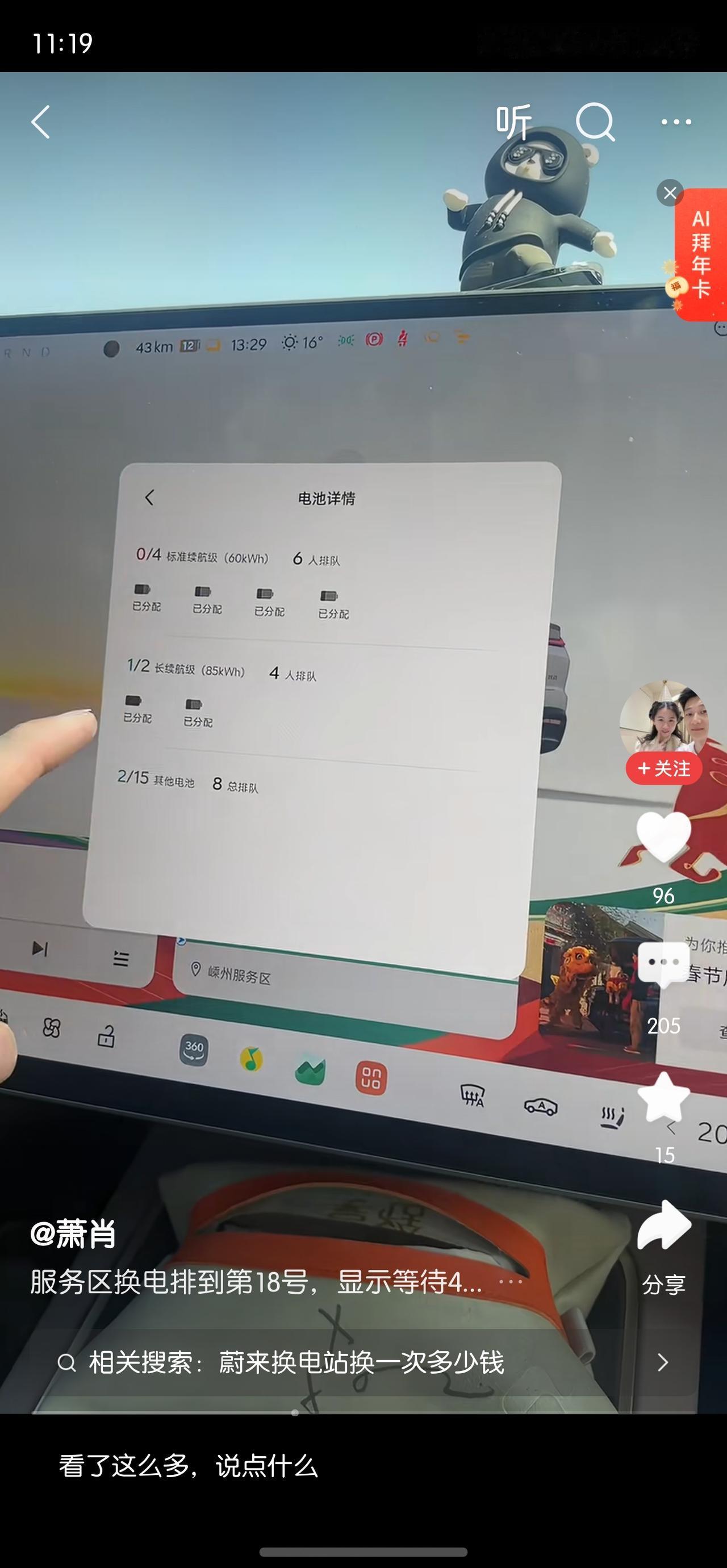 从造价角度来看,换电站注定就不可能比闪充多,甚至很多小城只有一个或者两个换电站,而从运营角度看,一个换电站达到盈亏平衡至少45次换电,也就意味着,换电站也不可能无限多! 从换电时间看的确只需要6分钟,但是我家楼下遍地闪充,9分钟充满了,有啥理由去换电站? 因此,闪充的出现打碎了未来的大批量布设换电站的梦!而数量上不去,体验就不可能上去!这还不考虑节假日高速出行换电需求,而随着车型越来越多,单个换电站的电池型号也要越来越多,平摊给某一车型的电池数量也就越来越少!所以,未来的路,注定没有未来!