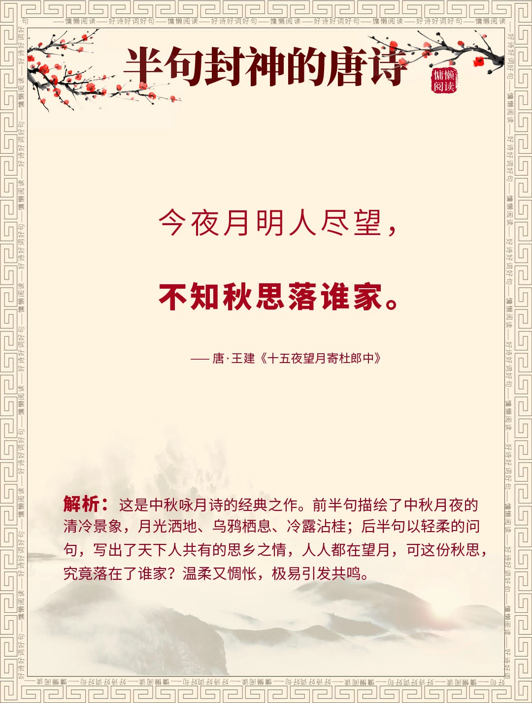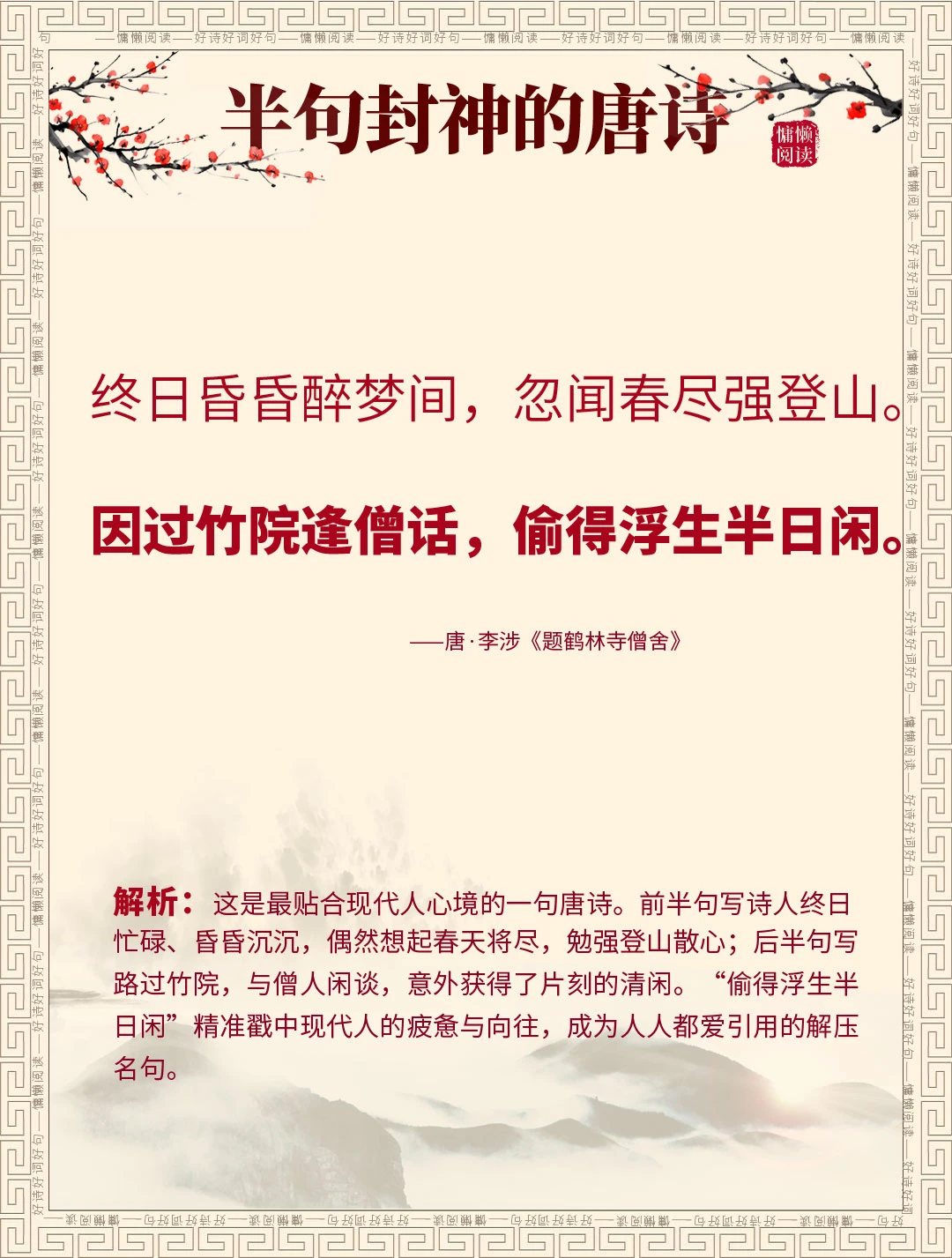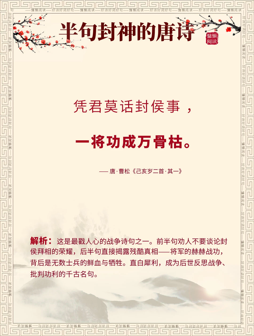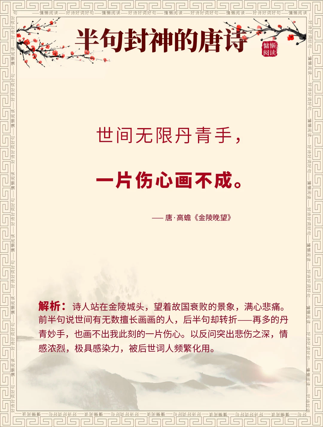 众多流传千古的唐诗名句,可你知道吗?这15句唐诗,下半句家喻户晓、人人会背,上半句却少有人知,甚至90%的人都没听过完整全诗! 我们天天挂在嘴边的“天若有情天亦老”“一将功成万骨枯”“偷得浮生半日闲”,原来前半句藏着这么多故事和深意。今天就一次性盘点15句“上半句冷门,下半句千古”的唐诗,配上全诗解析,看完不仅涨知识。