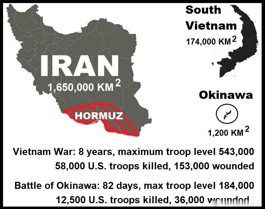 相比之下,请参考图表和岛屿情况,冲绳岛的攻克耗时82天,美军动用了4个陆军师和3个海军陆战师,付出了12500名美军阵亡和36000名美军受伤的代价。冲绳岛的面积比格什姆岛还要小。