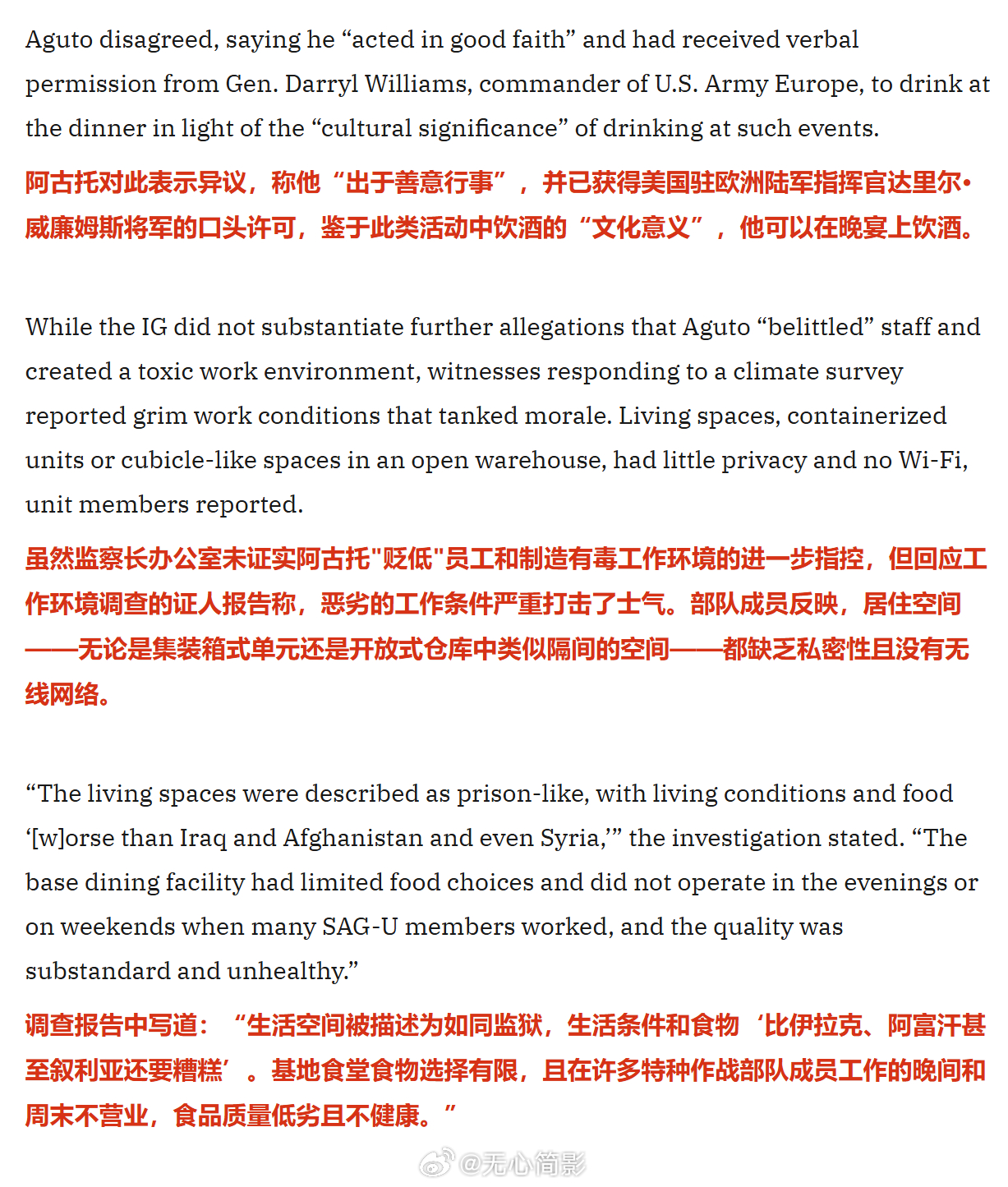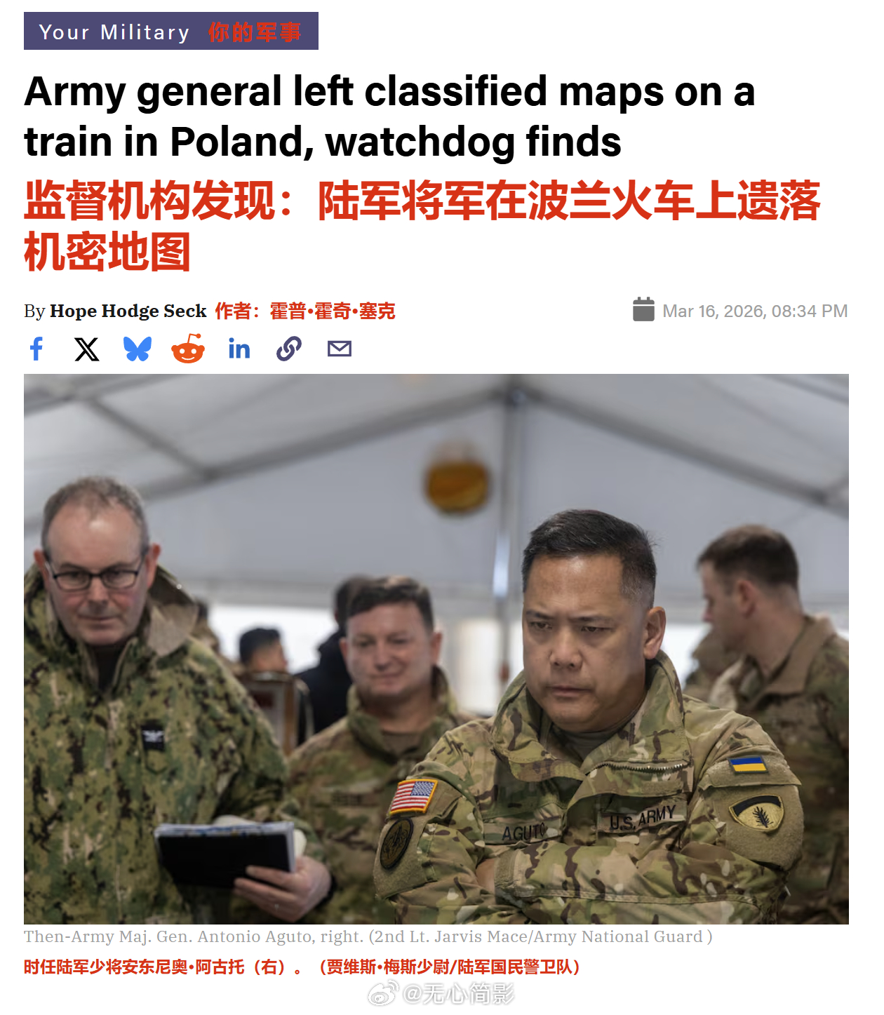 美军将领在基辅醉酒狂欢 美国国防部监察机构的一份报告发现,2024 年美国陆军少将安东尼奥・阿古托在前往乌克兰的行程中,一到达当地就参加趴体喝了个大醉,然后至少摔倒3次(把自己摔成脑震荡)还以醉酒状态会见当时的美国国务卿和乌克兰军方领导人。更重要的是,这哥们把机密文件忘记在去往波兰的火车上了,时间超过24小时,最后还是通过外交途径找回来的。阿古托于 2024 年 8 月卸任指挥官一职,同月退役。