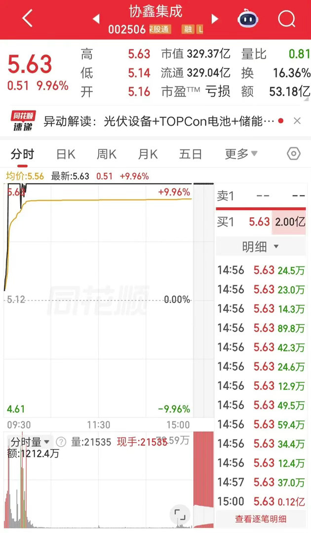 今天协协鑫集成开盘快速涨停。