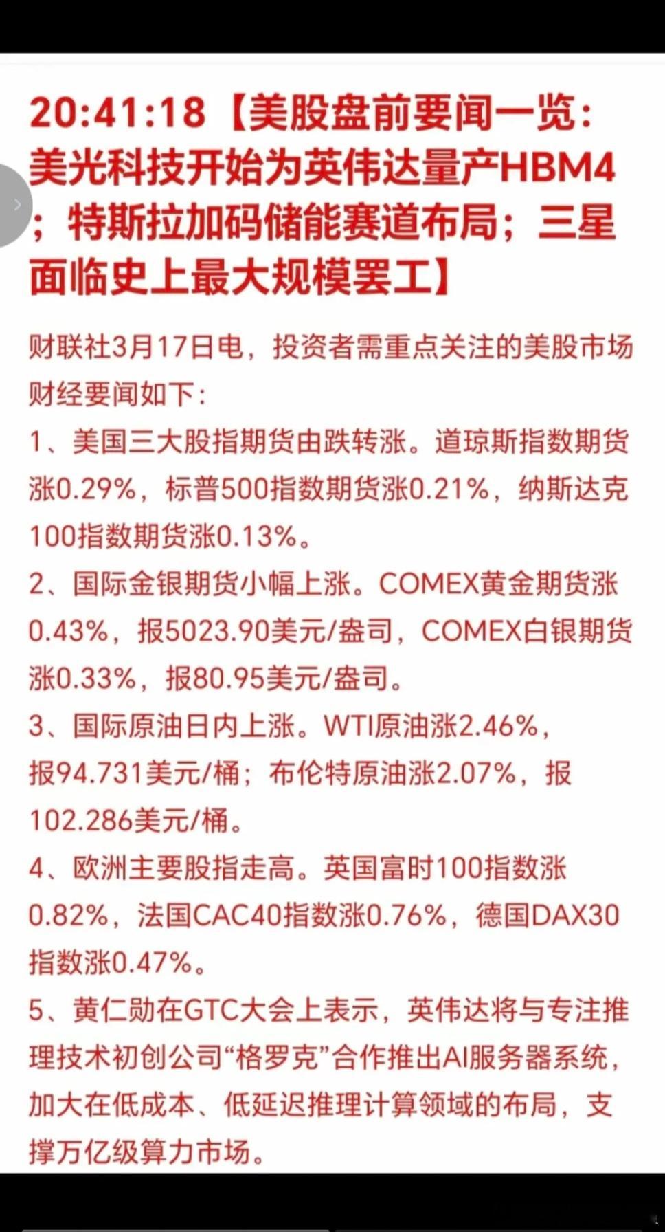 3.18周三 财经热点新闻汇总!全球“存储芯片”紧缺可能加剧!美光HBM4即将