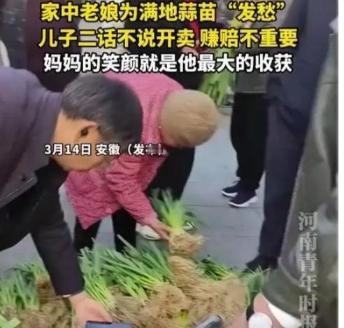 1元一把还送!安徽儿子帮母亲卖蒜苗,偷偷动手脚,看完全网破防:这才是顶级孝顺! 安徽蚌埠的一幕,看哭了无数普通人。65岁的老母亲,辛辛苦苦种了一亩地蒜苗,眼看就要烂在地里,急得整夜睡不着,对着一地绿油油的蒜苗直叹气。 在老人心里,这不是菜,是自己一把年纪还能为家里出力的底气,是省下来的柴米油盐钱。卖不掉,比割她的肉还疼。 在外的儿子听说后,立刻开车赶回家,二话不说把蒜苗拉到街边。他不图赚钱,只图让母亲宽心,1元一把随便挑,遇到没零钱的路人,直接挥手送人。短短一会儿,满满一车蒜苗就被抢空,数着手里皱巴巴的零钱,一共107元。 可谁也没想到,儿子悄悄做了一个暖心的小动作——他偷偷往钱袋里添了两百多块,把整沓钱整理得整整齐齐,递到母亲手里。 老母亲捧着钱,笑得合不拢嘴,一遍遍念叨:“没想到能卖这么多!太值了!”数完整整300多块,脸上的愁云一扫而空,那是比自己赚了大钱还满足的笑容。 有人说,这107元是蒜苗的价值,可那多出来的200多块,是儿子藏在细节里的温柔。我们总以为孝顺是买大牌、给大钱,可老人要的从来不是金山银山,而是被认可、被心疼,是觉得自己“还有用”。 网友一句玩笑话戳中了多少人:明年老太太怕是要把邻居家5亩地全包了!笑着笑着,就红了眼眶。 这世上最温暖的事,莫过于你养我长大,我懂你辛劳,用最温柔的谎言,守护你最简单的快乐。这样的孝心,比任何礼物都珍贵! 你身边有这样暖心的小事吗?评论区说说,让我们一起被温柔治愈~安徽大蒜价格 老三生鲜蒜苗