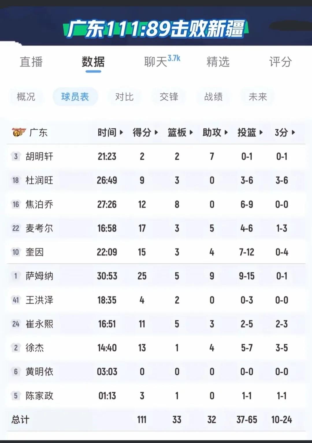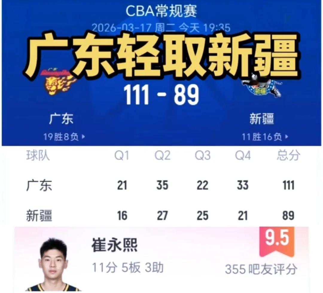当球队打不开局面时,崔永熙占了出来,当队友失误时,崔永熙走到他面前安慰鼓励,自己投进三分时,吼一声给自己也给队友以加油。 崔永熙复出第二场比赛给球迷吃下定心丸,虽然状态还没到最佳,但表现可圈可点。特别是开朗的性格,灿烂的笑容感染着队友,给近期球队的低迷注入活力,以后适合当球队队长。 杜锋这场比赛也改变了很多,终于拿起战术板,要知道这“棋盘”是李春江前辈送给他的。 焦泊乔也打了出来,虽然没有神采奕奕眼光,但这是阿杜给他的信任改变。 三名小外也不各自为战了,相互配合,打得立体,防守不遗余力,进攻确保效率。 徐杰也是,疲劳期一过,状态复苏,其拿手的抛投,精准的三分,场上的调控,让球队充满生机,进攻行云流水。 111-89大胜新疆22分,这才是广东队原本的水平,这才是真正的广东队。 这场比赛能说明四个道理: 1.崔永熙能感染球队进取心。 2.对焦泊乔轻言教导,没准每场都会有两双。 3.坚持让徐杰主控,球队进攻会很流畅。 4.杜锋专心球队,就会乘风破浪前进。 多些笑容,生活会更美好。