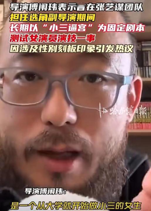 张艺谋,冲上热搜! 3月17日下午,张艺谋突然冲上了热搜,这一次不是啥好事,而是导演傅闱玮的爆料,把张艺谋团队的选角流程推上了风口浪尖。 “小三逼宫”,向来被大众唾弃。 谁能想到,导演选角竟然以小三的视角展开,美其名曰只要演好了这个角色,之后再多更困难的场景不在话下。 初次难道是“电影鬼才”,竟然还有这样“高标准”的戏码? 若是这些标签都和张艺谋挂上钩,想必一定会惊掉众人的下巴。 在圈内,傅闱玮绝对是选角领域的老人了,说句知根知底一点都不夸张。 也正因为他有过这样的经历,能接触到张艺谋团队选角的核心流程,他说的话才更有分量,不是凭空捏造,也不是为了博眼球蹭热度。 傅闱玮原本只是打算和网友随便唠唠圈内选角的一些小八卦,说着说着就聊到了自己当年在张艺谋工作室的工作经历。 一开始他还说得挺含蓄,没怎么展开,结果越说越具体。 不管你是科班出身还是素人,不管你想试的角色是什么类型,只要想进张艺谋团队,都得先过这一关,没有例外。 说出来你们可能也会觉得有点离谱,傅闱玮说得明明白白,就是让试戏的女演员,扮演一个怀孕的“第三者”。 而扮演“出轨男”的副导演,也有明确的要求,就是坚决不签字,还要用各种刻薄、伤人的话刺激女演员,比如“你就是个外人,我不可能离婚”“你怀的孩子跟我没关系”。 他还开玩笑,那段时间,看到女演员拿着化验单过来,就条件反射地想躲。 熟悉刘浩存的朋友都知道,她是张艺谋力捧的“谋女郎”,当年试镜《一秒钟》的时候,她才16岁,还是个未成年人,没什么表演经验,纯粹是个新人。 试镜纪录片里的她还很青涩,扎着简单的马尾,对着对戏的男演员,一遍又一遍地追问“为什么不能离”“你说话啊,为什么不签字”,语气里满是委屈和绝望。 等到男演员说出刻薄的拒绝话语后,她的眼泪瞬间就掉了下来,不是那种刻意挤出来的眼泪,是那种忍不住的、崩溃的哭,情绪爆发得特别到位,看得人都跟着揪心。 只不过当时这段纪录片放出来的时候,大家都以为这只是一个普通的试戏片段,没人多想,也没人去深究这个片段的背景。 可是,测试哭戏和情感爆发力的方法有很多啊,比如演一段亲人分离、梦想破碎,或者被人误解的片段,都比这个合适。 毕竟这个年纪的孩子,心理还很脆弱,长期接触这种负面情绪,很容易留下心理负担。 我们之前只看到了“谋女郎”们光鲜亮丽的一面,看到她们凭借一部作品一夜成名,却不知道,她们在背后,可能要经历这样充满争议、甚至有点残酷的试戏过程。 影视行业的魅力,就在于多元和包容,不同类型的演员,有不同的灵气和优势,不能用一个统一的标准,去衡量所有的人,更不能用一种有争议的方式,去消耗演员的热情和灵气。 不管怎么说,这次的热搜,已经不仅仅是一次简单的爆料,更引发了大家对影视行业选角潜规则的深度思考。 如何用更合理、更人性化的方式选拔演员,这才是行业长久发展的关键。 对于这件事,您有什么想说的吗?欢迎评论区留言讨论。 信息来源:大象新闻