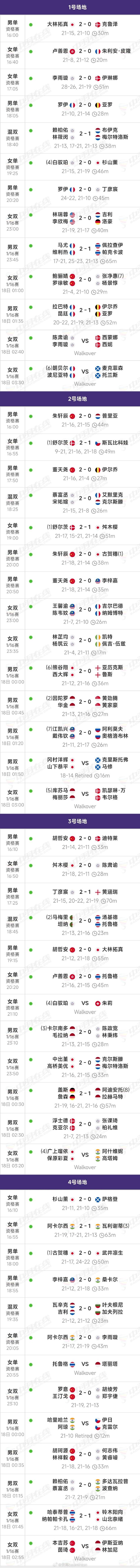 2026奥尔良大师赛 首日国羽全胜,董天尧击败李梓嘉 2026年奥尔良羽毛球大师赛,昨天结束了首个比赛日的争夺,国羽小将们表现出色,9战全胜。其中最出彩的是董天尧,2比0爆冷击败了李梓嘉,有些意外的。 胜9场 朱轩辰2-0(21-16,21-15)普里亚 朱轩辰2-0(21-18,21-14)古贺穗 胡哲安2-0(21-14,21-11)迪特莱 胡哲安2-0(21-12,21-18)大林拓真 董天尧2-0(21-16,21-4)伊尔乔 董天尧2-0(21-18,21-14)李梓嘉 胡珂源/林祥毅2-0(21-18,21-16)何志伟/黄睿璿 鲍骊婧/罗徐敏2-0(21-4,21-10)张净惠/杨景惇 罗意/王汀戈2-0(21-19,21-13)胡绫芳/郑宇健 其余协会的场次看图片,没啥好说的。首日对阵的除国羽外,就没几个认识的。