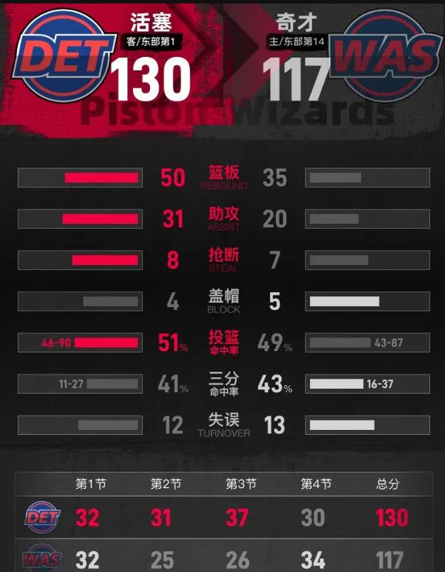 这哪是NBA常规赛啊,分明是活塞给奇才办的"内线得分训练公开课"!130-117,杜伦36分12篮板跟逛自家后花园似的,奇才喜提13连败,看得人既心疼又上火。 好家伙,坎宁安背部痉挛只打了5分钟就伤退,就这活塞还能赢17分,您说奇才这防守得多抽象?杜伦17投13中,罚球11中10,生涯新高拿得比训练赛还轻松。坎宁安下去后,奇才愣是没人能顶上去,眼睁睁看着杜伦在内线翻江倒海。 再说卡林顿,30分4篮板数据漂亮吧?但您细看,第四节垃圾时间刷的21分,那时分差早奔20分去了,防守强度还不如小区联赛。这种"个人刷分球队输球"的模式,对年轻人是毒药。莱利21分和尚帕尼18分9篮板也算尽力,但架不住全队跟散沙似的。 奇才现在啥处境?浓眉哥、特雷-杨、萨尔全伤缺,背靠背第二场,体力槽空了。但这不是防守眼神防守的理由!杜伦那36分里,多少是接球扣篮和二次进攻?护框全靠眼神,篮板卡位全靠缘分,这防守是纸糊的还是压根没带? 治愈在哪儿?在这13连败不是终点,是面照妖镜。照出重建的阵痛,也照出态度不能丢。活塞现在是东部第一(49胜19负),他们也有过黑暗时刻。奇才这16胜52负的战绩,提醒管理层:年轻人有天赋(卡林顿、莱利),也得学会怎么赢球,而不是怎么刷数据。 防守是底线,态度是门面。可以输,不能这么输。这130分丢的,是学费,也是警钟。杜伦36+12卡林顿30分 活塞大胜奇才