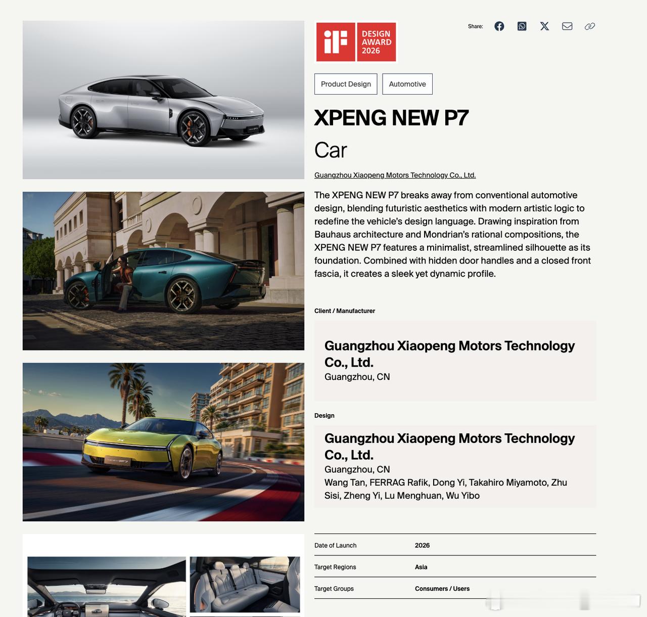 小鹏P7获得德国if设计大奖 小鹏P7凭未来设计斩获 iF 设计大奖,收获来自