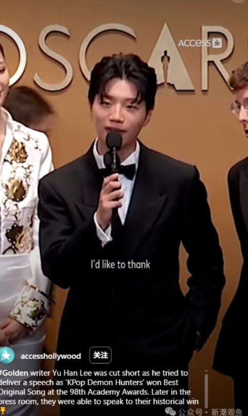 “让你上桌,却不让你发言”奥斯卡再现歧视亚裔风波,韩国人指责这是种族歧视 《Golden》成为第一首获得奥斯卡最佳原创的kpop 歌曲。当获奖人Yu han lee 准备发表获奖感言的时候,导播直接切音乐,让他不知所措愣在原地。 看到Yu han lee 被打断,网友非常不满,指责奥斯卡不尊重亚裔歌手,这是赤裸裸的种族歧视