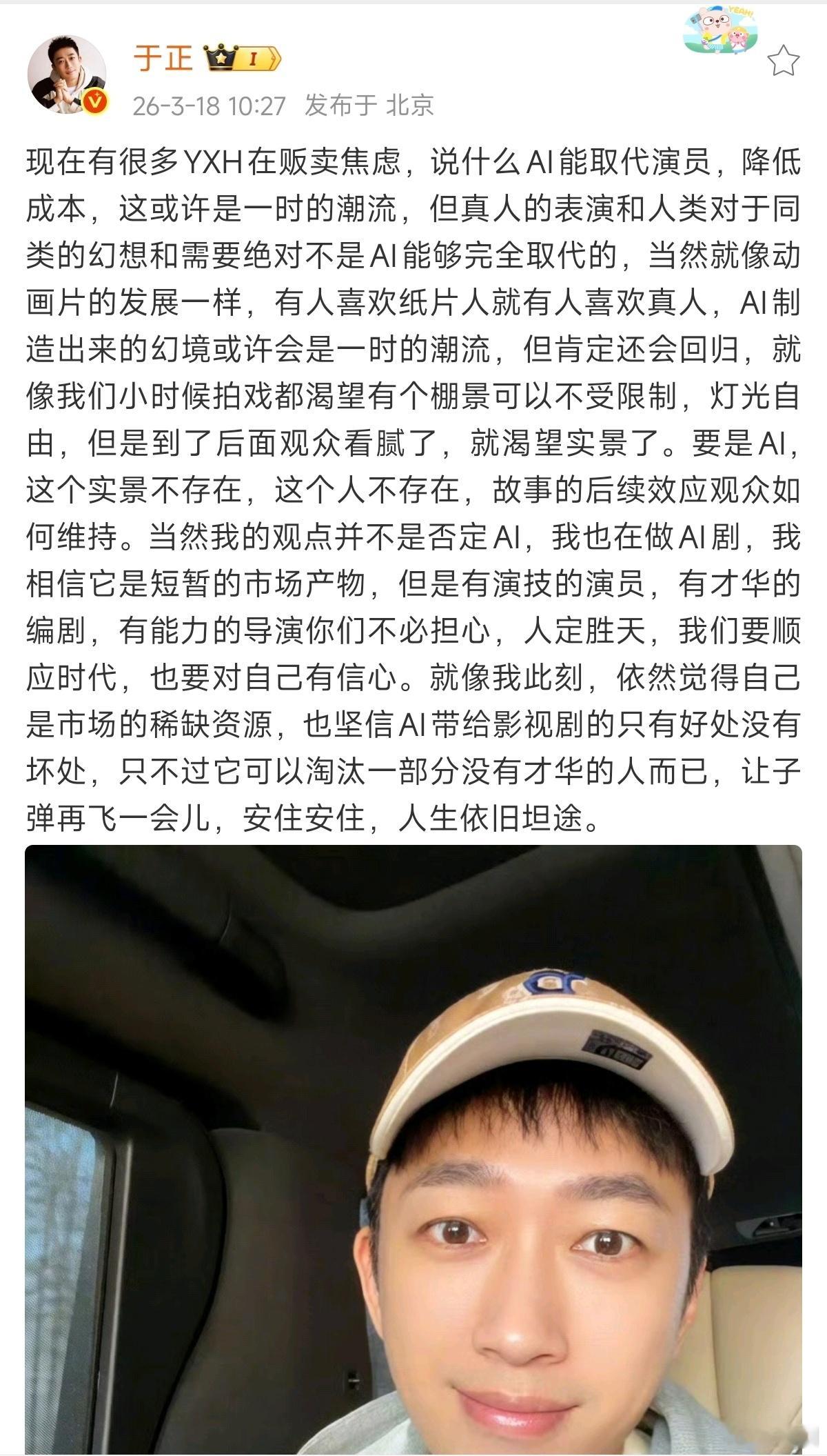 这把同意于正的,才不要看伪人,虚拟偶像不如看动画片,真人表演是没什么能取代的。
