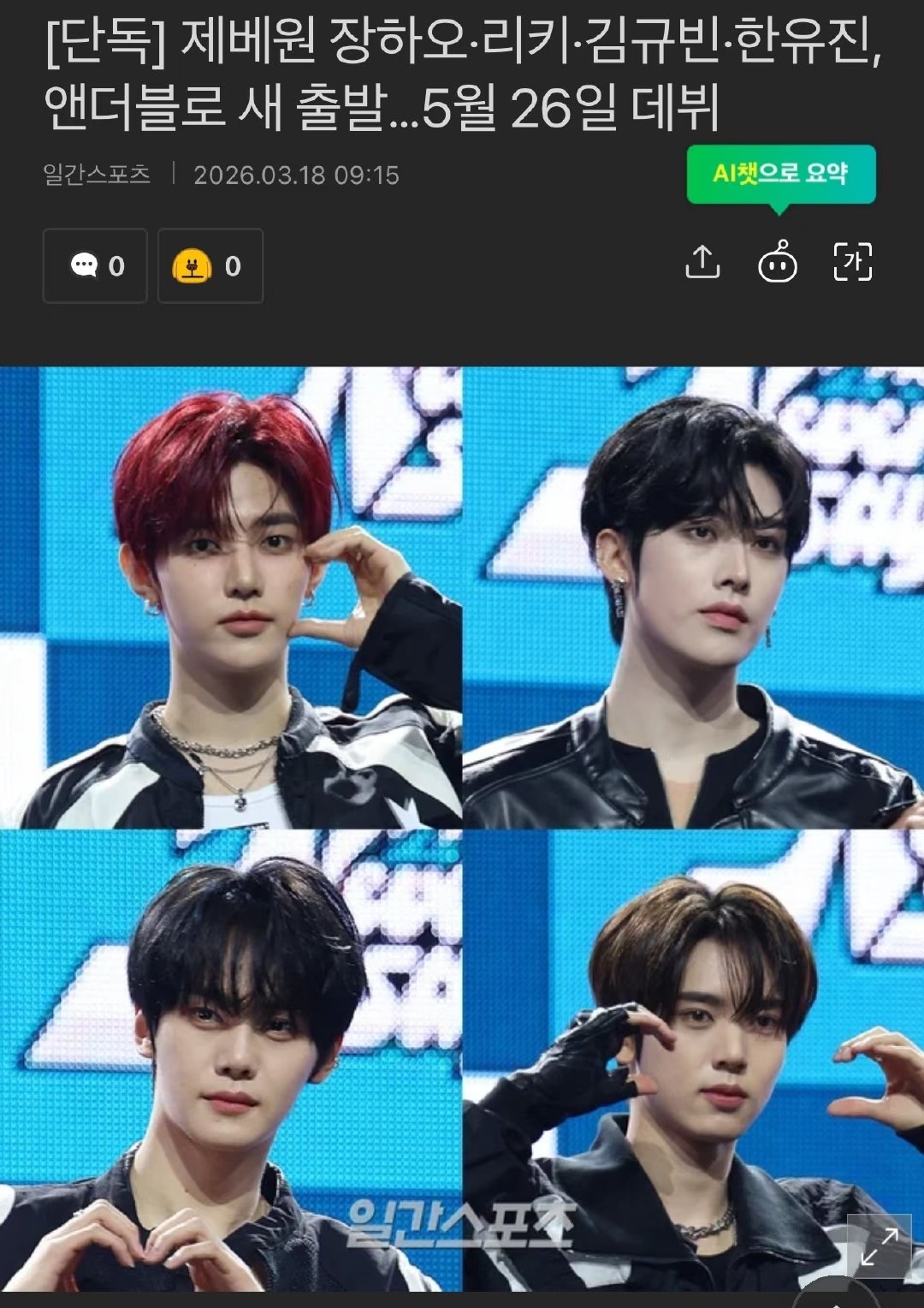 章昊 新男团YH Ent所属的章昊、沈泉锐、金奎彬、韩维辰将于5月26日以新男团
