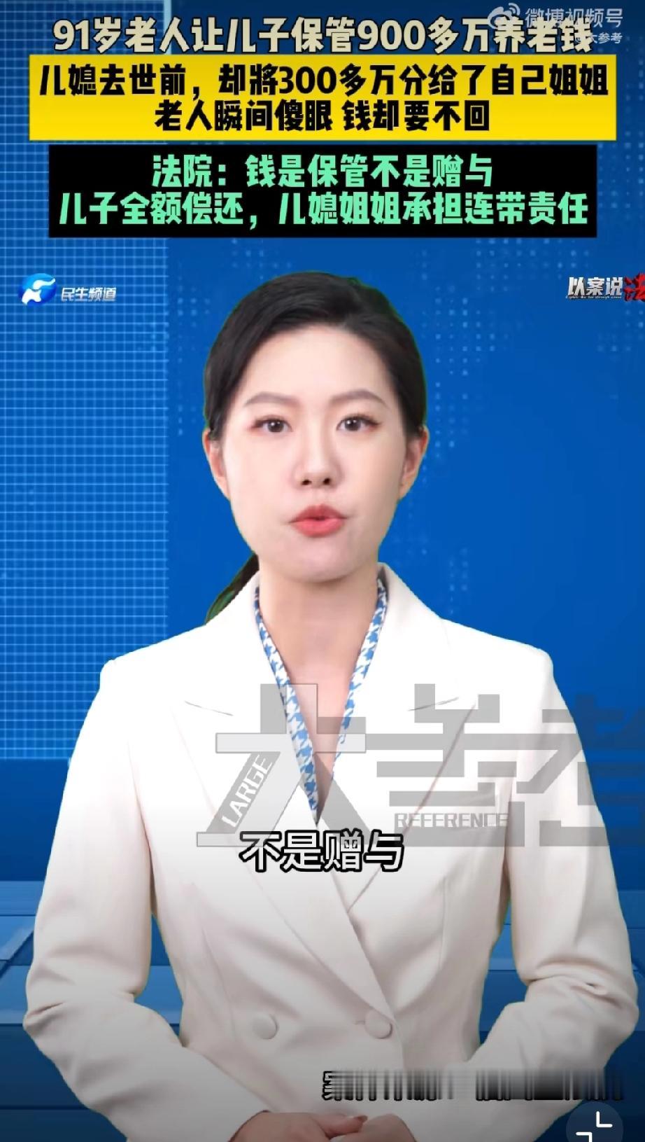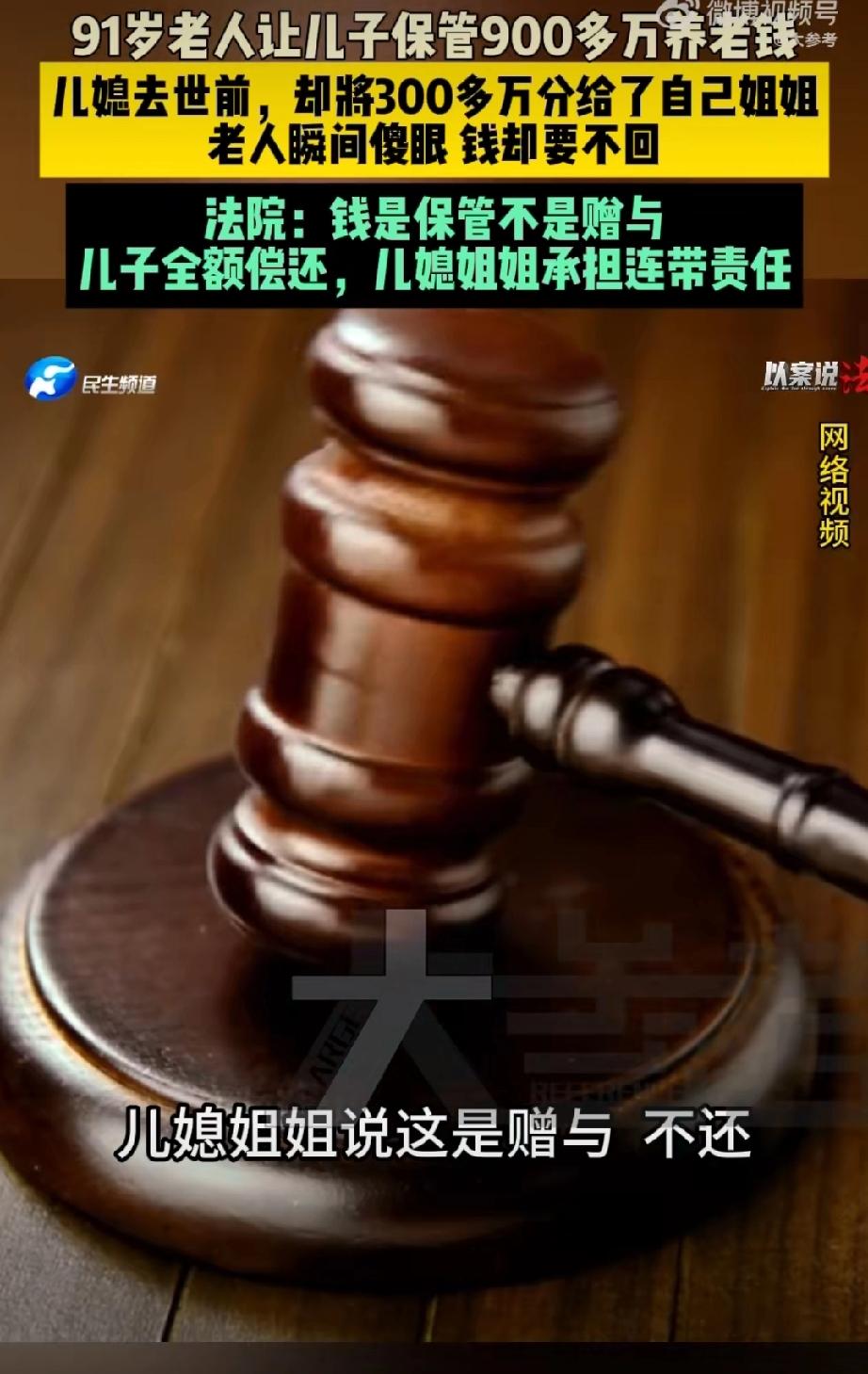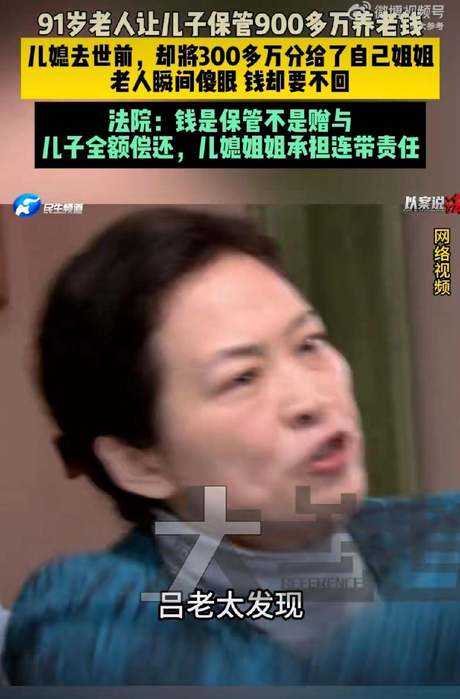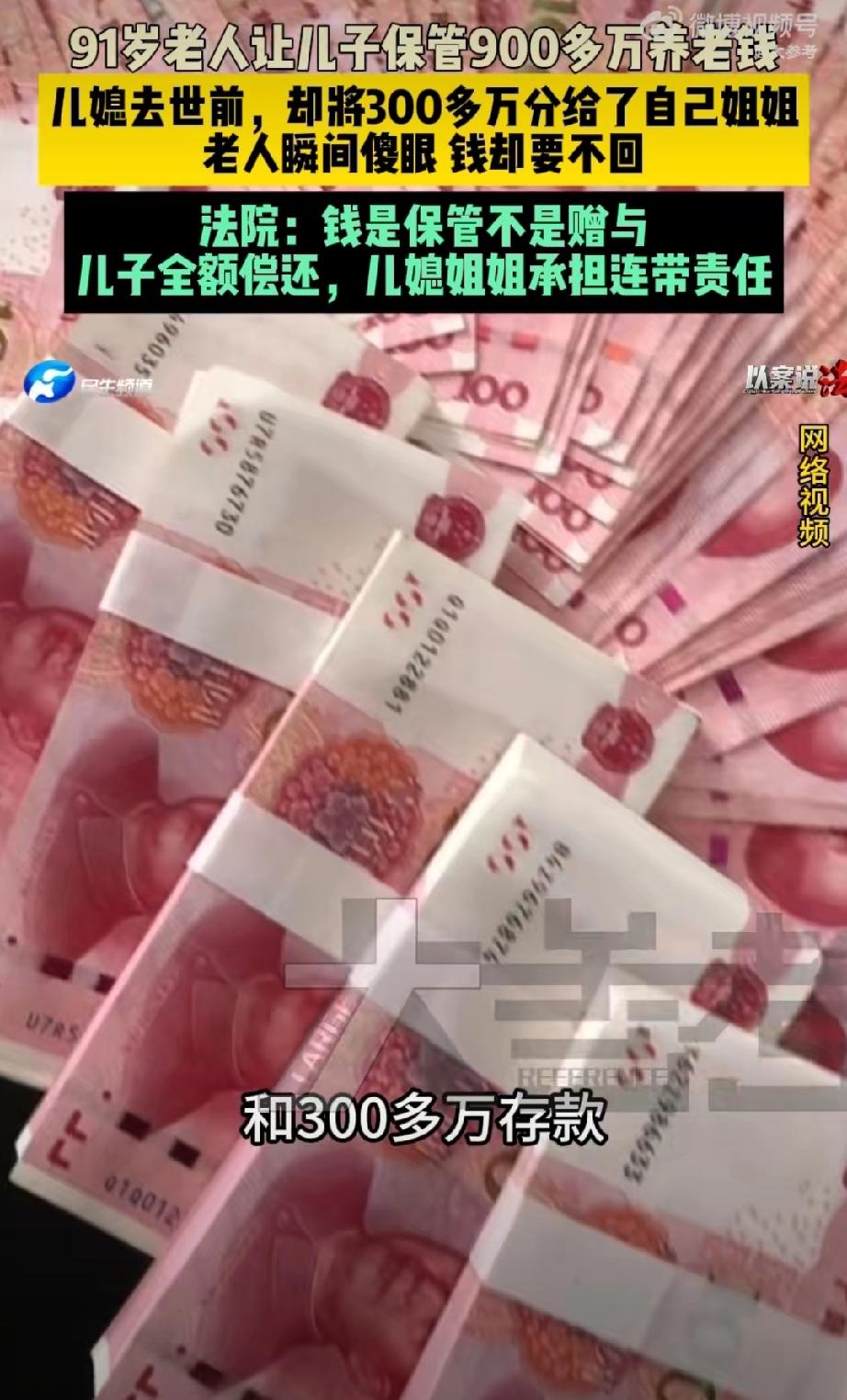 9旬老人900万养老钱被儿子儿媳花光。 很多人还是读不懂这个案例,实际上老人是在为儿子讨回财产。 老人把全部财产给儿子和儿媳托管,这个儿媳太恶劣了,去世前玩了一手,竟然通过遗嘱把用老人财产买的房子和存款指定由其姐姐继承… 儿媳这样的行为,对家庭,对老公,对老人来说,实在是有些背信弃义,是背叛!最后老人无奈还要跟儿媳的姐姐对簿公堂… 唉,估计这个儿子应该是非常软弱那种。老人财产继承 存款老人去世 遗产归儿子