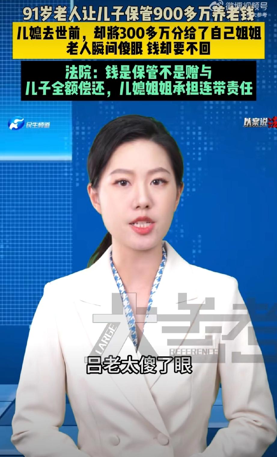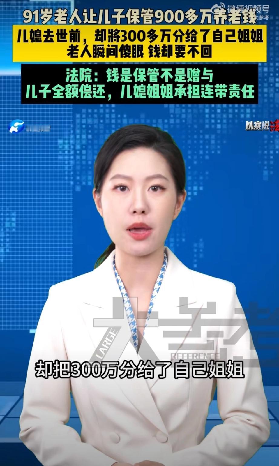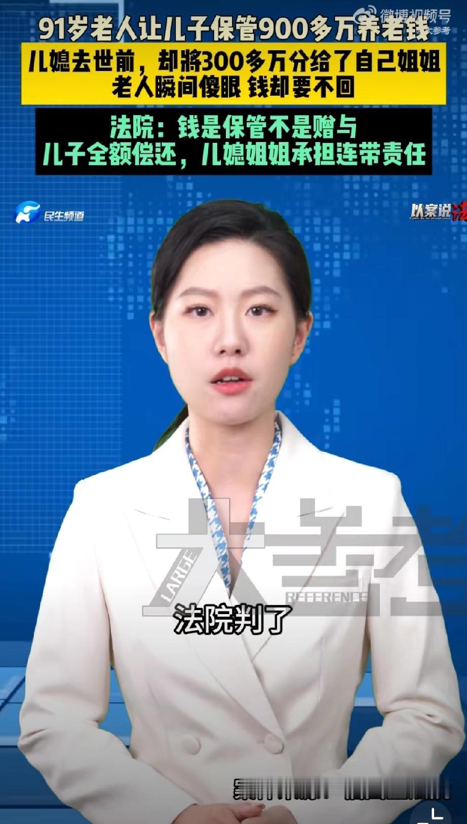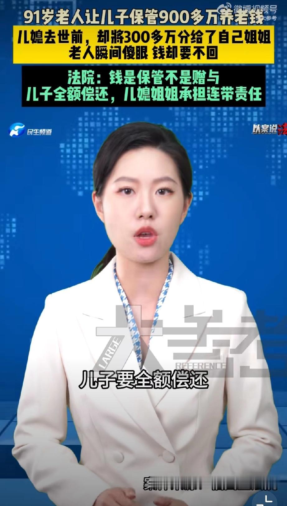 9旬老人900万养老钱被儿子儿媳花光。 很多人还是读不懂这个案例,实际上老人是在为儿子讨回财产。 老人把全部财产给儿子和儿媳托管,这个儿媳太恶劣了,去世前玩了一手,竟然通过遗嘱把用老人财产买的房子和存款指定由其姐姐继承… 儿媳这样的行为,对家庭,对老公,对老人来说,实在是有些背信弃义,是背叛!最后老人无奈还要跟儿媳的姐姐对簿公堂… 唉,估计这个儿子应该是非常软弱那种。老人财产继承 存款老人去世 遗产归儿子