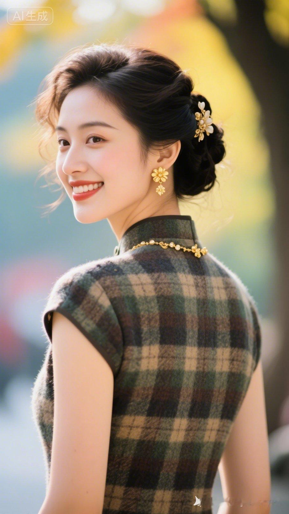 秋日暖阳下的优雅旗袍,绽放如花的笑容
