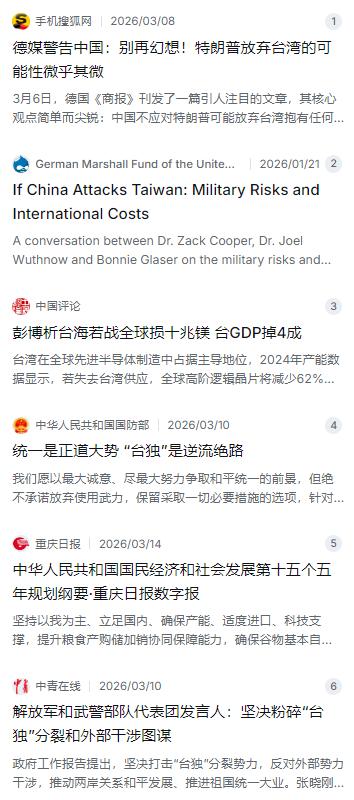 德媒表示,中国武力解决台湾问题的概率非常的低,因为中国有非常多的顾虑!德媒表示,中国大陆武统台湾代价极为沉重。 麻烦看官老爷们右上角点击一下“关注”,既方便您进行讨论和分享,又能给您带来更多优质的内容,感谢您的支持! 德国媒体最近又盯上了台海这个话题。三月上旬,德国《商报》发了篇分析文章,大概意思是说,中国大陆通过武力方式解决台湾问题的可能性,实际上“非常低”。理由听起来也挺现实:中国大陆现在顾虑太多,全球经济捆绑得太深,自己家里还有一堆事儿要操心,真要动手,那代价实在太沉重了。 德媒这次倒不是瞎忽悠,他们还真点了几个死穴。首先就是台湾海峡这条水路,全球贸易的咽喉要道,每天从这儿过的货轮占全球海运量巨大份额。一旦有个风吹草动,不仅是中国,日本、韩国、甚至美国的西海岸日子都不好过。更关键的是那绕不开的台积电,全球高端芯片几乎都指着它。彭博社前不久也做过推演,说台海要是真打起来,第一年全球经济损失就能冲到10万亿美元左右,这个数字比特么当年的金融危机和疫情加一块儿都吓人。 除了钱的事,文章还提到咱们内部的稳定。德媒认为,现在的首要任务是拼经济、搞科技、解决老百姓实实在在的问题。战争是个吞金兽,也是个巨大的不确定因素,对于一个立志于高质量发展的大国来说,这步棋确实不会轻易去走。德国的国际关系学者也经常讨论,说中国高层在做决策时,肯定把社会民生、经济转型这些内部账算得清清楚楚,这些都是影响决策的硬杠杠。 不过话说回来,德媒虽然把“武统”的概率说得挺低,但他们可能忽略了中国人在主权问题上的那股倔劲儿。就在德国媒体发文章的同时,北京正在开两会,解放军代表在记者会上又把那句话说了一遍:咱们愿意用最大的诚意、尽最大的努力去争取和平统一,但绝不承诺放弃使用武力。这句话说了几十年了,听着熟,但分量一点没轻。 说白了,不放弃武力的选项,根本不是冲着台湾老百姓去的,而是给那些想在岛内搞“渐进式台独”的政客,还有老想在边上煽风点火的外部势力划的红线。比如美国那边一边说要维护台海和平,一边又搞军售、派议员窜访;欧洲那边有时候也想过个船、刷个存在感。这些动作看起来不大,但踩的底线都一样。就在这几天,国台办也公开回应了,话讲得很明白:为了和平统一,我们愿意创造广阔空间,但谁要敢动国家主权和领土这根筋,那就别怪我们不客气。 德媒的分析里其实也注意到了这一点。他们提到,中国大陆这几年疯狂提升经济实力、科技实力和军事实力,其实是在给“和平政策”买保险。你没实力,光喊口号,人家当你软弱。你有实力但不用,那叫战略定力。像这些年搞出来的国产航母、隐身战机、导弹技术,还有那个越来越稳的国内经济大盘,都是在告诉对岸也告诉全世界:我不是打不过,我是在给你时间。 所以现在这个局面挺有意思。一边是西方媒体帮你算账,说战争代价太大,你不敢打;另一边是我们自己也在算账,但算的是如何在尽可能减少损失的前提下,实现国家的完全统一。双方虽然都看到了“代价”二字,但对代价的理解完全不同。德媒觉得代价是吓阻,而我们认为,只要“台独”势力敢越界,或者外部势力敢下场,那就算代价再大,也得去扛。 回头看德国《商报》那篇文章,它的逻辑其实有漏洞。它假设理性人会永远选择避免损失,但在国家主权问题上,很多时候算的不是经济账,而是政治账。你去看今年刚公布的“十四五”规划,里面专门有一章讲国家安全,强调要“严厉打击敌对势力渗透、破坏、颠覆、分裂活动”,这就已经写得很直白了。 说到底,台湾问题从来不是一道选择题,而是一道必答题。和平的日子大家都想过,和平的红利大家也都想拿,但这一切的前提是不能分裂。德媒说我们顾虑多、代价大,这话没错,确实得考虑全球经济、半导体供应链、社会稳定。但这些顾虑有个前提,就是国家主权这根红线不被触碰。 一旦红线被踩,所有的成本计算都会推倒重来。那一天如果真的来了,所有的顾虑都得给国家意志让路。就像那句老话:丢掉幻想,准备斗争。而现在,咱们能做的就是在保持最大善意的同时,把拳头练得更硬,让那极小部分想搞分裂的人,掂量掂量后果。毕竟,能战方能止战,这个道理,什么时候都不过时。