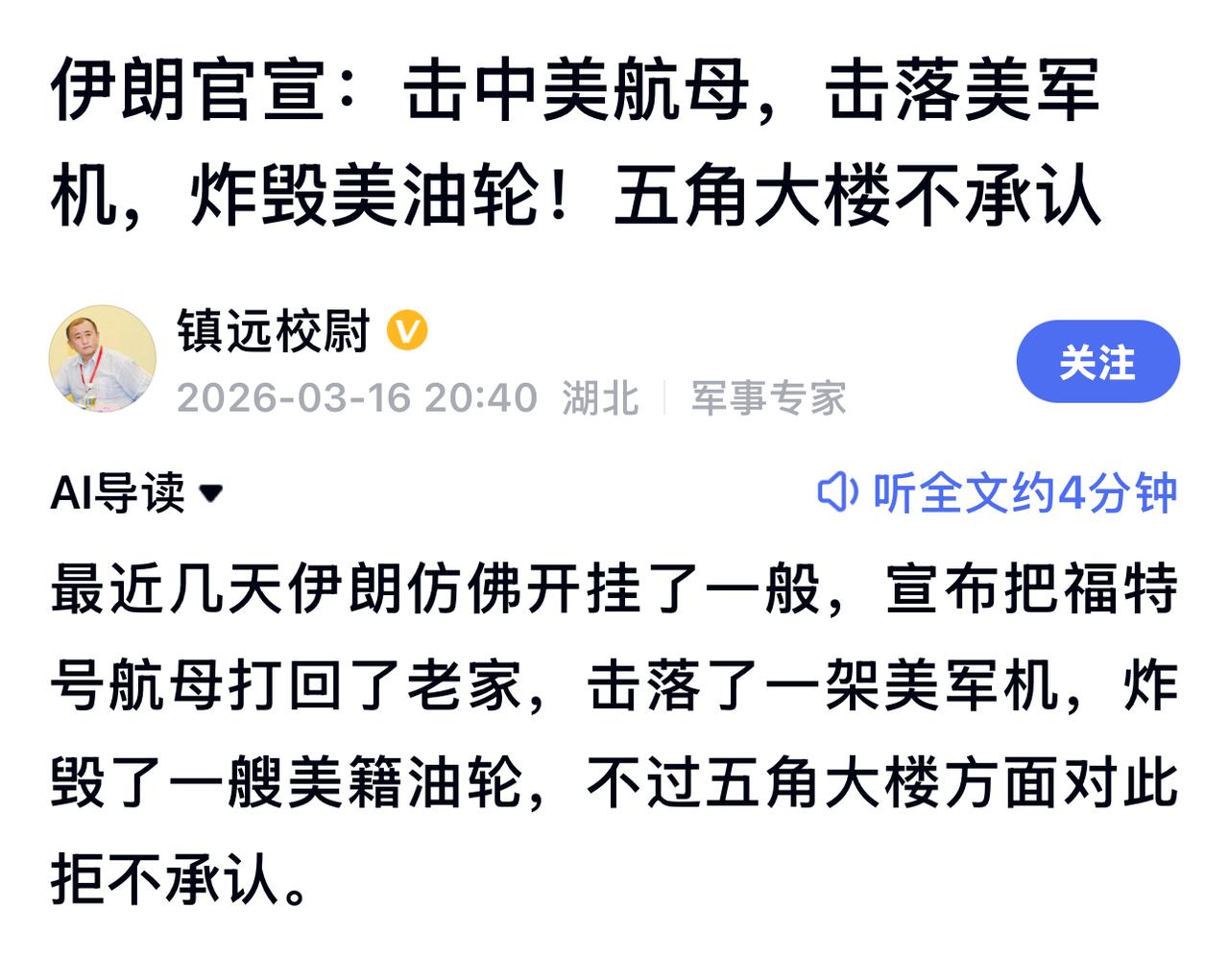 “福特 ”号航母大火持续燃烧30多个小时才扑灭,600名水兵受影响 《纽约时报》16日消息,美国“福特”号航母上周发生的火灾在持续燃烧了30多个小时后才被扑灭,航母多处设施受损,超过600名水兵和船员每天只能睡在地板上。 “福特”号航母目前正在红海附近海域参与对伊朗的军事行动,就这次火灾发生的原因,美国军方表示与这次作战任务无关。但据来自其他方面的消息,13日伊朗方面发射的导弹打击了美军第五舰队基地,“福特”号航母起火。 不过战时敌对双方为了打舆论战,心理战,都在有意夸大和隐瞒实际情况,但航母的确不是轻易被打中的,它的出行有一个大型编队,有多个舰艇做护卫,这些军舰都具有极高的反舰能力,它们会对航母形成且强有力的保护,但美国航母的老化和年久失修的确是公认的事实,它的内部起火不是没有可能。
