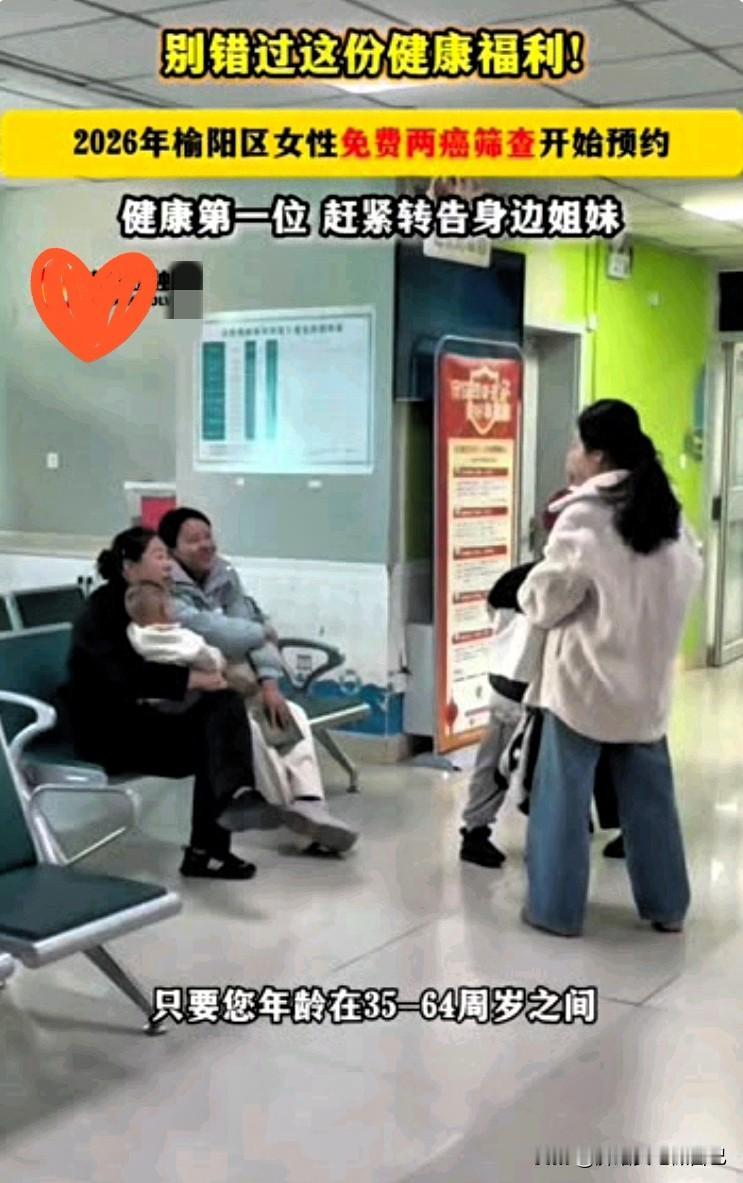 榆阳姐妹速看!2026免费两癌筛查正式开约🔥 家人们!榆阳的民生大福利来啦!2026榆阳区女性免费两癌筛查,今天正式开启预约啦! 这可是国家给咱女性的专属健康保障,宫颈癌+乳腺癌,全程免费,一分钱不花! ✅ 谁能约:35-64周岁榆阳适龄女性(常住就行,不限户籍) ✅ 查啥:宫颈TCT/HPV+乳腺彩超,早筛早安心 ✅ 怎么约:带身份证去社区/乡镇卫生院登记,或线上预约 ✅ 小提醒:月经干净3-7天去,前3天别同房、别用药 早筛查、早发现、早治疗,给自己健康上道保险! 别等、别拖、别错过,赶紧约起来! 快转给身边姐妹,一起薅这波健康羊毛~癌症早筛查 癌症早筛骗局 宫颈癌早筛 高发癌筛查 榆林美容优惠 宫颈癌复发险 宫颈癌双筛