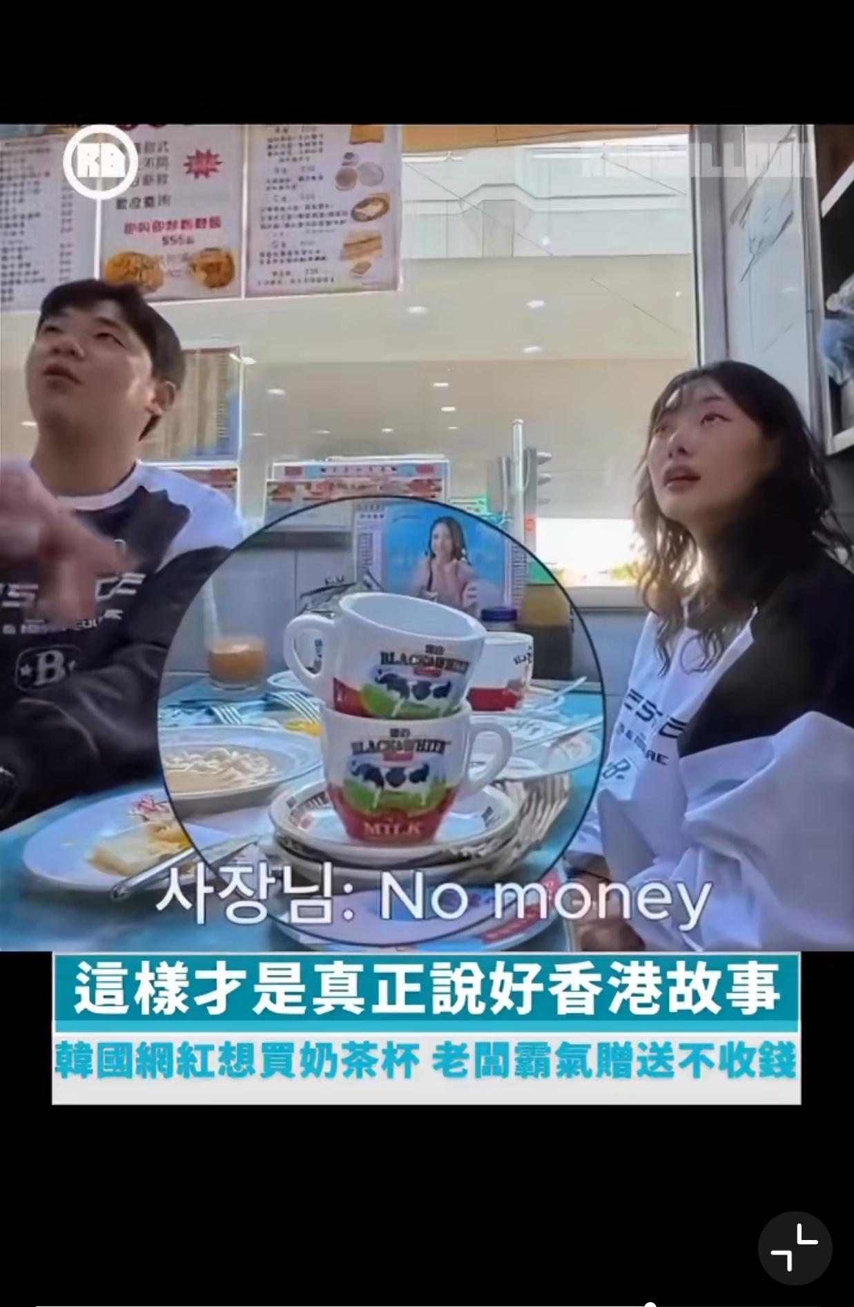 一对韩国夫妇去香港旅游,在西环石塘咀一家茶餐厅吃早餐时,见餐厅的茶杯很漂亮,于是询问老板这杯子卖不卖… 起初老板回应是非卖品,但过后老板直接拿出两套全新的免费赠送给他们,这让这对韩国夫妇十分感动,于是去附近便利店买了一盒朱古力作为谢礼送给了老板…