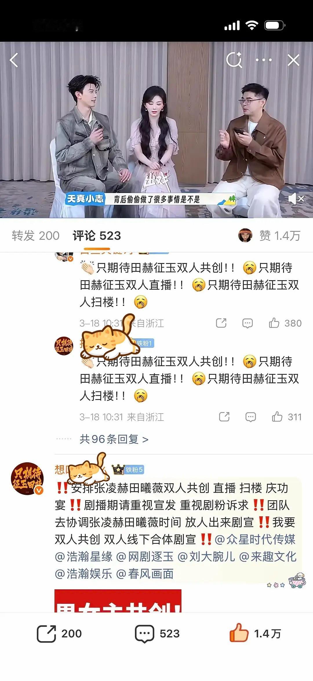 逐玉主cp粉丝田作之赫把副cp微博给涂了不让邓凯和孔雪儿的cp营业