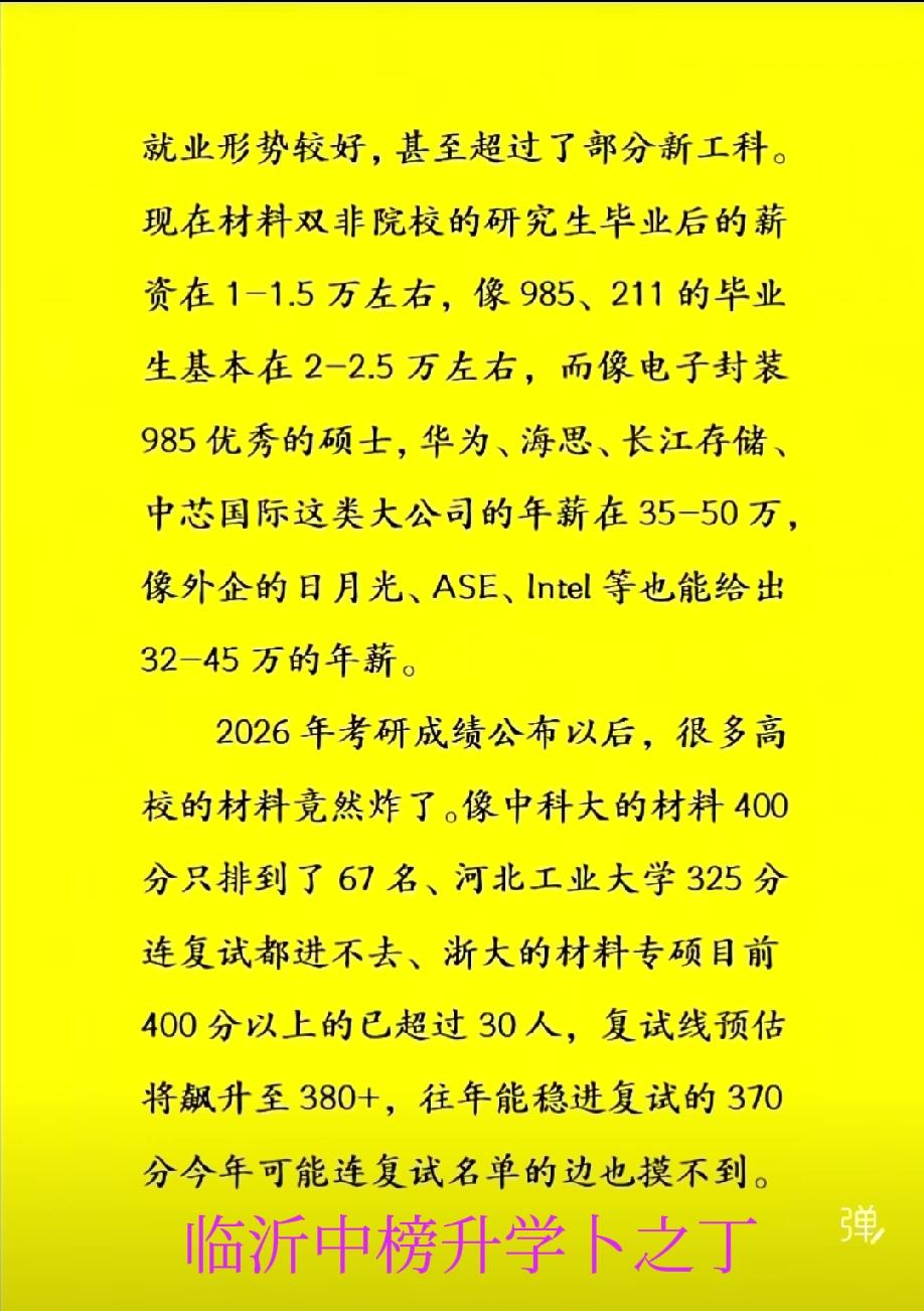从网上看到一个文章(下图),说今年考研,材料类也热了。网上就有很多声音,说材料类在生化环材的四大天坑里脱坑了。还有人说,可以与计算机、人工智能排到前三了。其实,没有什么热专业冷专业,只有与社会科技发展相匹配的专业。欢迎大家留言文明交流!