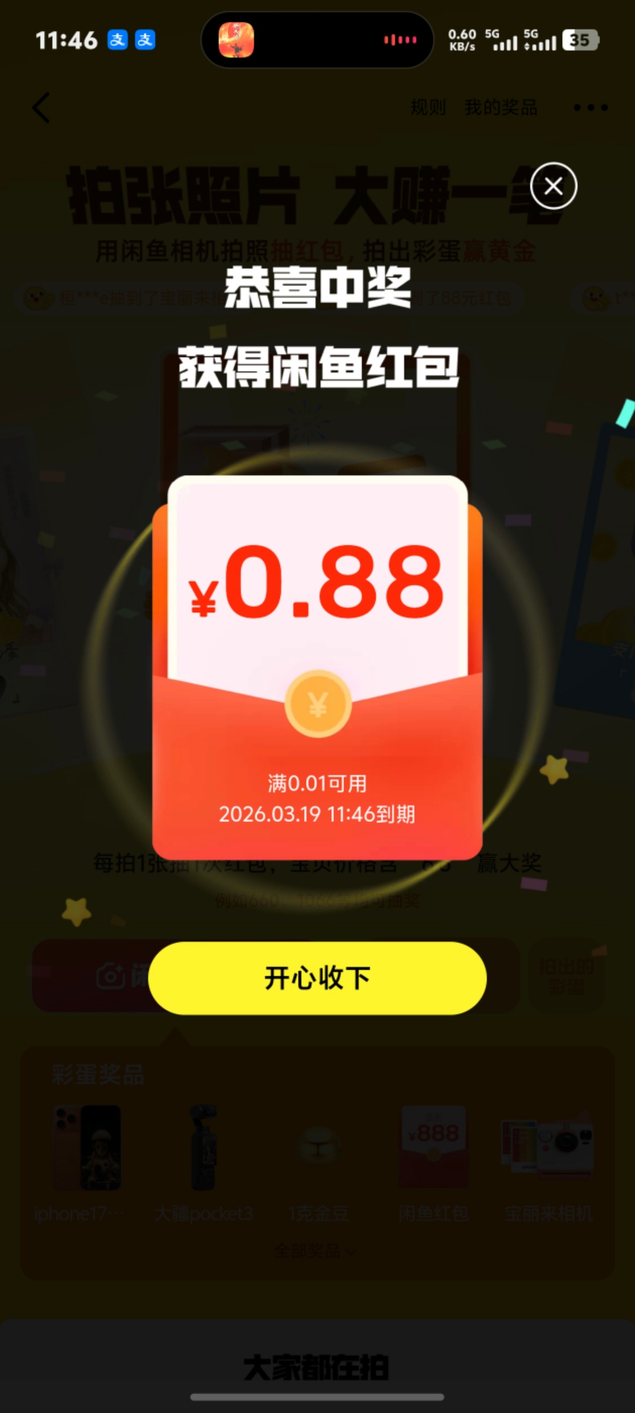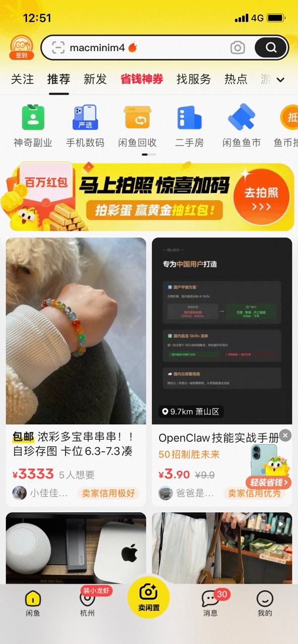 "春节期间薅羊毛抢红包的手感还在吧?我再推荐一个——闲鱼「拍张照片,大赚一笔」。