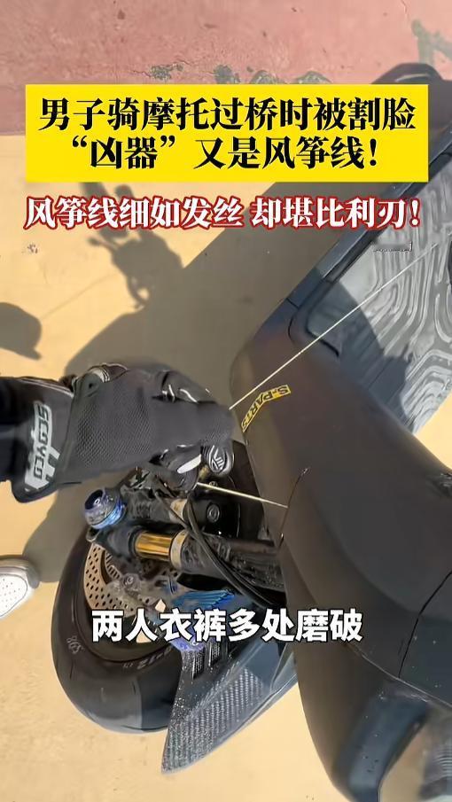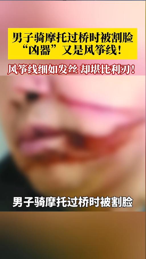 “太吓人了!”近日,四川南充,一男子骑车过桥时,突然发现前方不远有根风筝线,男子大骇,可是车速太快,已经无法避让,还是撞了上去。巨大的拉力瞬间将其拽倒,摔在了地面上,脸上被割出了三道口子!网友:路上看见放风筝的一定要减速! 儿童散学归来早,忙趁东风放纸鸢。不知不觉,又到了放风筝的好时节。可是风筝虽好,危险性也高,尤其是对无关的路人。每年这个时候,总是会发生很多风筝线割伤行人的事件,值得人们警醒。 据媒体3月15日报道,事发当日,盘先生正骑摩托车带着自己的妻子,行驶到一座桥上时,突然发现前方有根风筝线,离自己只有几米的距离了。盘先生大惊之下,赶紧刹车避让。可是由于当时车速较快,还是撞了上去。 只一瞬间,盘先生和妻子就被风筝线拽倒,摔在了路面上。他妻子还好些,衣裤擦坏了点,腿受了点皮外伤。盘先生就惨了,脸上直接被风筝线割出了三道血淋淋的口子。两人缓了好几分钟,才从地上爬起来,去了医院。 网友看后表示,风筝线看着很细,其实强度非常高,人不察之下碰到,很容易就被割伤了。尤其是还有些白色甚至透明的线,不靠近根本看不见,更加地危险,每年因此发生的“割喉事件”屡见不鲜。 提醒大家,在路上看到有人放风筝,一定要提高警惕,放慢速度,仔细观察。骑车出门时,带好头盔,遇到风筝线也能救自己一命! 信息来源:《风筝线细如发丝却堪比利刃!男子骑摩托过桥时被割脸,“凶器”又是风筝线!因距离太近、车速较快,男子来不及避让直接撞上,巨大的拉力瞬间将其带倒摔在地面》第1眼新闻