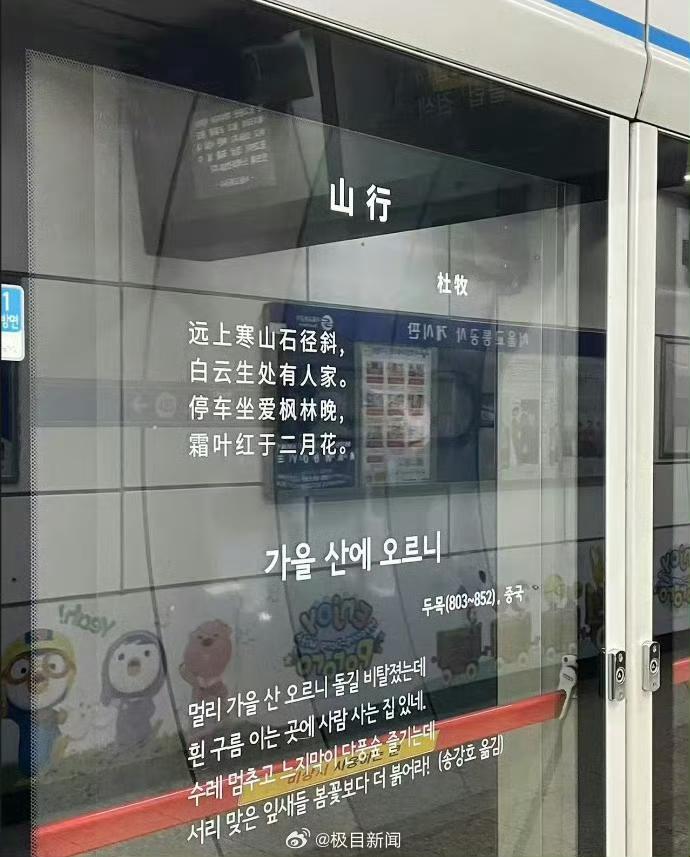 唐诗宋词火到韩国地铁站。这可不是什么好事,过两天,唐诗宋词都成韩国的了,还是让韩