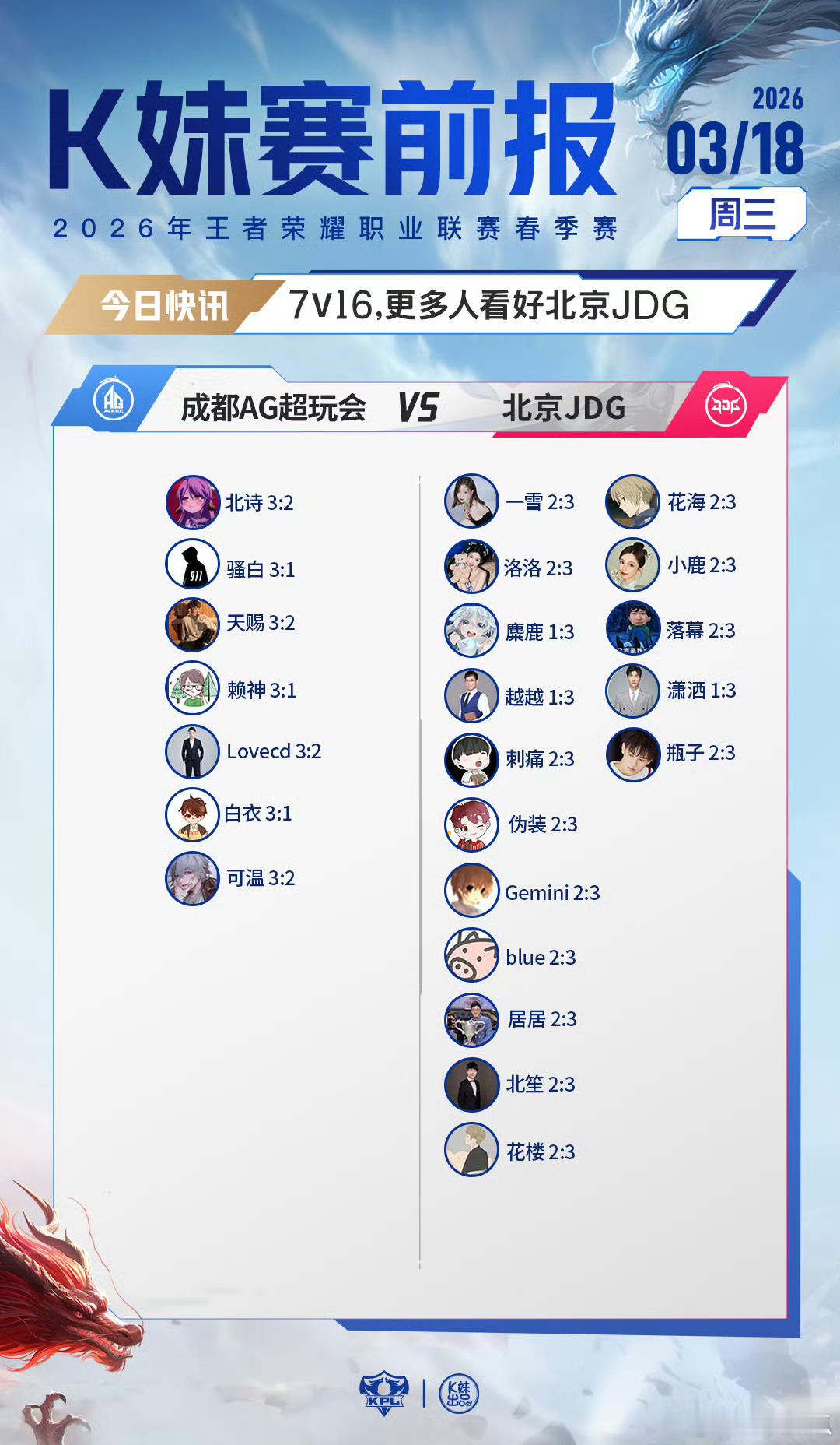 2026KPL春季赛|K妹赛前报18v5,更多人看好重庆狼队;7v16,更多人看
