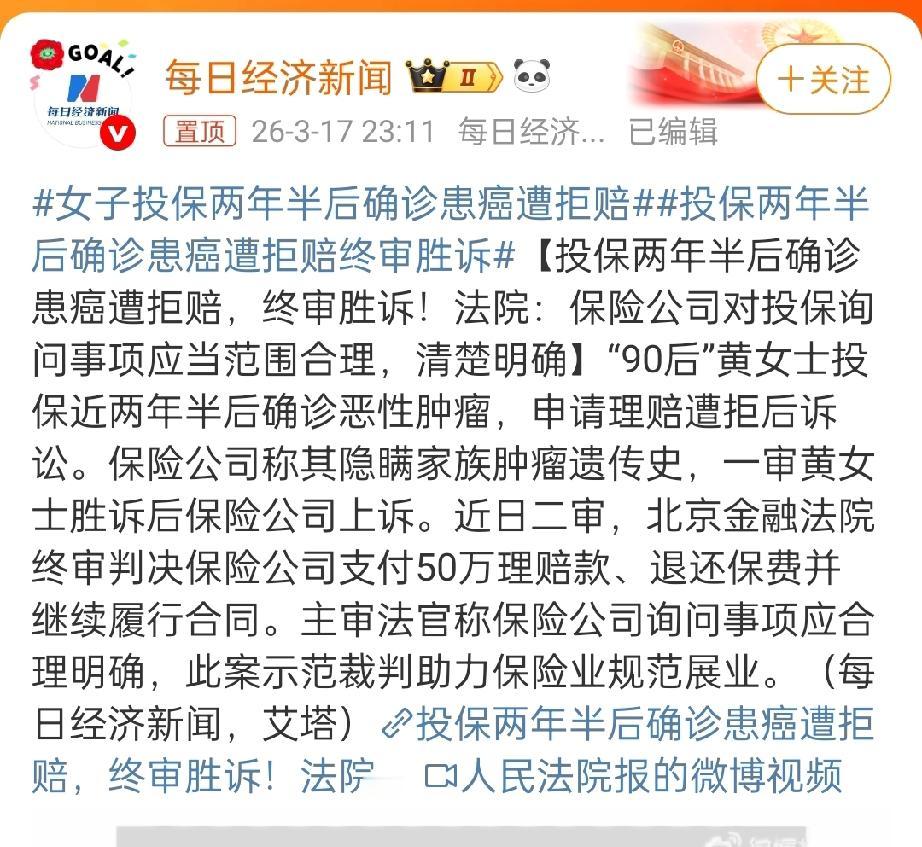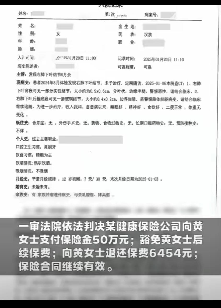 90后黄女士投保两年半确诊肺癌遭保险公司拒赔,法院终审判决保险公司付50万元并继续履约。保险公司这套操作,荒唐至极、令人齿冷。 投保时,业务员为冲业绩,满嘴花言巧语,诱导签字、刻意避重就轻,从不主动核实、从不认真告知,只想着把保费收入囊中。 真到理赔关头,立刻翻脸不认人,出险时百般刁难,挖空心思找理由拒赔,满脑子只有利益,毫无契约精神与行业底线! 这次终审判决50万理赔款,本就是保险公司该履行的义务,不是施舍。这场胜诉,是法律对无良拒赔乱象狠狠纠偏,更是给整个行业敲响警钟! 别再把消费者当冤大头,契约与诚信,从来不是单向约束!肺癌治疗避坑 职业性肺癌 重疾踩坑