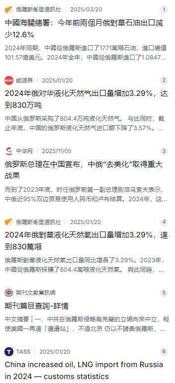 普京发了狠,五常里只有中国没入局,美国媒体突然注意到:中国正悄悄抄底俄罗斯?!在这场俄乌冲突中,除了中国,其他五常国家都卷入了战争,而中国则静静地买着石油,保持着局外人的身份。 麻烦看官老爷们右上角点击一下“关注”,既方便您进行讨论和分享,又能给您带来不一样的参与感,感谢您的支持! 俄乌冲突打了这么久,明眼人都看得出来,联合国五常里四个都直接或间接下了场。美国英国法国那是在背后拼命递刀子,导弹、坦克、情报支援,能给的都给了;俄罗斯自己更是直接赤膊上阵。绕了一圈大伙儿突然发现,五常里头居然还有一个始终没入局的,那就是中国。美国媒体最近也回过味来了,一边炒作所谓“中国援俄”的话题,一边又不得不承认,中国压根没蹚这浑水,反而趁着这个机会,安安静静干了一件大事——抄底俄罗斯能源。 其实哪来什么“抄底”,说白了就是踏踏实实的做生意。当西方国家在那儿切断和俄罗斯的能源交易,自己忍受着通货膨胀和能源危机的时候,中国倒是稳坐钓鱼台。你看中国这位置摆得多正:仗我不打,武器我不给,劝和促谈我一直在做,但正常的买卖你不能拦着我吧?就这么着,中俄之间的能源贸易这几年是噌噌往上涨。根据咱们中国海关总署的数据,2023年一年,中国就从俄罗斯进了1.07亿吨原油,比前一年暴涨了24%,直接让俄罗斯成了咱们最大的石油来源国 。 这还不是最绝的。到了2024年,虽然增速慢下来了,但总量依然稳得很。海关总署的数据显示,2024年全年咱们又进口了1.0847亿吨俄罗斯石油,占了咱们总进口量的近五分之一 。这说明啥?说明不管外面打得怎么天翻地覆,中俄这能源管道是彻底打通了,而且是细水长流。这不光是买油,这是在给咱们国家的能源安全上双保险,多一个渠道,多一份底气。 除了石油,天然气这块也是搞得风生水起。都知道欧洲以前最依赖俄罗斯的天然气,现在自己把路堵死了。中国这边呢,管道气照收不误,液化天然气也是买买买。2023年,光是中俄东线那条管道,就送过来了227亿立方米的气,加上海运的液化天然气,总共差不多400亿立方米,让俄罗斯直接成了咱们第三大液化天然气供应国 。到了2024年,咱们从俄罗斯买的液化天然气冲到了830万吨,又涨了3.3% 。你想啊,这些长年累月的能源合同,签的可都是二三十年的大单子,这才是真正的“压舱石”。 更让美国坐不住的不光是买卖做大了,而是做买卖的方式变了。以前大家用美元结算,美国不高兴就能把人家踢出系统。现在中俄之间正在悄悄搭一座新的桥。你翻翻这两年的数据,2023年那会儿,中俄能源贸易里用卢布和人民币结账的就已经占了四成,人民币跟卢布直接兑换的量更是涨了300% 。到了2024年,俄罗斯那边直接放话,中俄贸易结算里头,美元和欧元的份额已经低到可以忽略不计了,差不多95%都用本国货币 。 这才是真正捅到马蜂窝的地方。中国不声不响的,既买到了打折的油,又推了一把人民币国际化,还顺手把外汇储备里美元的比重往下拉了拉。这种“去美化”不是喊口号,是一笔一笔交易谈出来的。俄罗斯手头攒了一大把人民币,正好用来买中国的工业品、电子产品、汽车,这钱又回流到了咱们这,形成了一个闭环。美国看着干着急,因为这相当于在石油美元的堤坝上,悄悄凿开了一道口子。 说到底,中国这步棋走得稳。别的国家忙着选边站,忙着递枪递炮,中国就专心干三件事:买能源、促和谈、搞本币结算。仗总有打完的一天,到时候那些被炸烂的地方需要重建,那些被制裁耗尽的资源国需要回血,而手里握着真金白银和工业产能的中国,早就站在了那等着。所谓的“抄底”,抄的不是危难,而是长远的眼光。