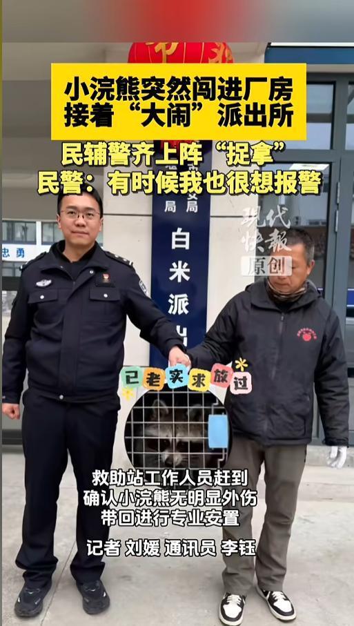 “笑不活了!”近日,江苏泰州,民警接到报警称,辖区一工厂里闯进了一只不明动物。民警赶到现场,仔细辨认后确认是小浣熊,抓到后关进笼子,带回了派出所。不成想,它竟然搁派出所越狱了,一群民警费了好大劲才又抓回来。网友:搁派出所还想跑? 据媒体3月12日报道,事发当日,派出所民警接到报案,辖区内一工厂闯进了一只不明生物。工人们不敢处理,便向派出所报了案。 民警赶到现场后,经过仔细辨认,确认这只不明动物是只小浣熊。民警利用捕捉网等工具将其捉住,旁边不少工人争相拍照。随后,民警将浣熊带回了派出所,准备联系救助站。 事情到这里并没有结束,在救助站工作人员到来之前,小浣熊竟然“越狱”了,在派出所大院里四下乱窜,寻找着出去的路。 这下好了,整个派出所都被惊动了,民警辅警齐齐上阵,拿起抄网四下里围堵,终于又将它“捉拿归案”,锁进了笼子里。 不久之后,救助站的工作人员赶到了,把它带走了,做了专业的安置。走之前还给小浣熊做了检查,发现它身上也没有受伤。 网友看后表示,搁派出所越狱,胆子挺大啊,这要是让它跑了,派出所可就丢大人了,不得让人家笑死!还好,民警是专业的,小小浣熊,拿捏! 信息来源:《小浣熊“大闹”派出所,民辅警齐上阵“捉拿”,民警:有时候我也很想报警!》现代快报