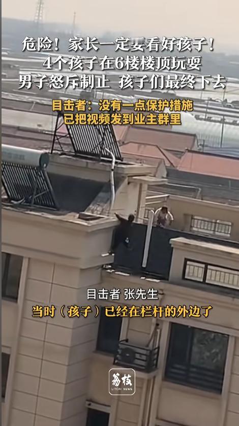 “安全教育不能少!”近日,河北唐山,一小区6楼楼顶上,有几个孩子在嬉戏玩耍。玩闹间,一个孩子翻出了护栏。这时候,一名男子看到屋顶的状况,冲着孩子大喊“下去!”,最终,男子的呵斥下,孩子安全地爬了回去。网友:中国好邻居! 孩子啊,天性就皮,偏偏学的东西还少,不能正确的分辨危险,哪怕身处险境也不自知,反倒是容易将围观群众,给吓一跳。 据媒体3月16日报道,事发当日,几个孩子正在小区屋顶上玩耍,楼顶上有装的防护栏杆。可几个孩子玩着玩着,就整出了事来。一个孩子把自己翻到了护栏外面。 只见他两只手抓着护栏,脚踩在楼檐上,外面没有了其他的任何安全保护措施,随时都可能发生坠楼的危险。这时候,旁边楼的一位邻居发现了,赶紧大声呵斥“下去!过去!” 在男子的呵斥下,孩子又重新翻回了栏杆,跳到楼顶平面上。整个过程,都被用手机记录了下来,随后,男子也将视频发到了业主群里,提醒家长好好教育。 网友看后表示,大哥好人啊,避免了一个悲剧的发生。家长朋友们以后可一定得看好自己的孩子,更要好好的进行安全教育,不要让孩子再做出这种危险的事情。 同时,也有人提出了质疑,物业干嘛去了?这种楼顶是开放的么?孩子是怎么上去的?怎么就没有个人防患于未然呢? 信息来源:《危险!家长一定要看好孩子!4个孩子在6楼楼顶玩耍 男子怒斥制止 孩子们最终下去目击者:没有一点保护措施 已把视频发到业主群里》荔枝新闻