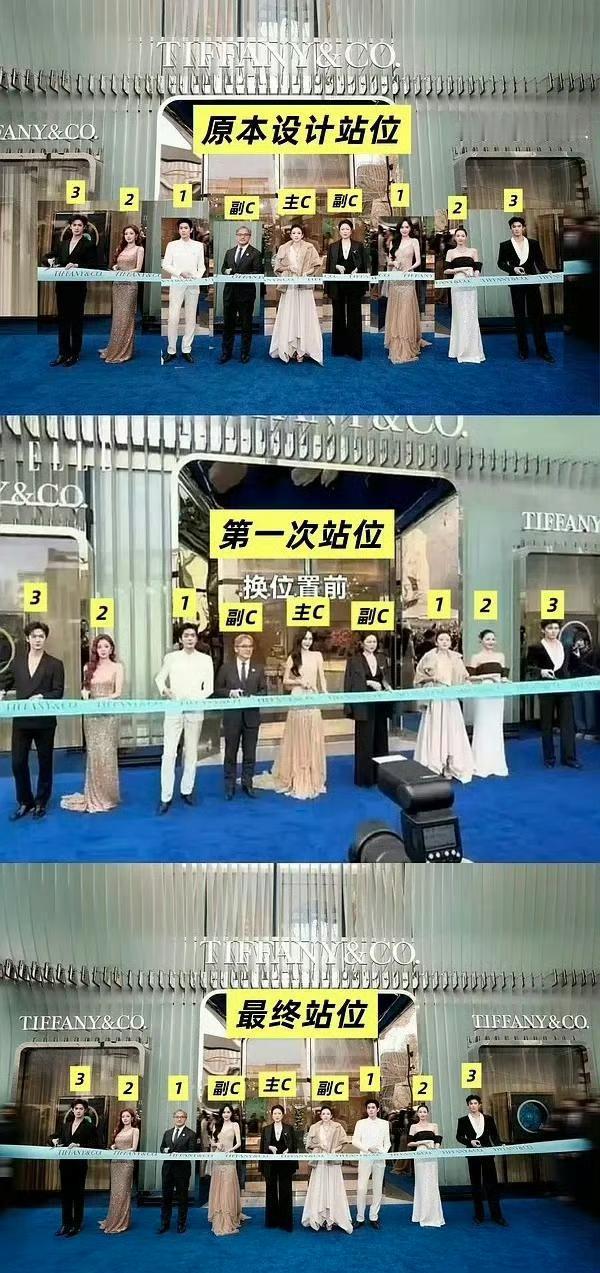 蒂芙尼大合影“抢C位”风波,钟楚曦唐嫣谁吃了暗亏? 上海蒂芙尼活动,众星云集的大合影瞬间引爆网络。 本以为是钟楚曦“故技重施”抢占C位,舆论瞬间炸锅。 但随着更多细节曝光,这出“C位罗生门”才露出真面目。 现场视频慢放,唐嫣在礼宾引导下,偏离了品牌预设的对称站位,率先走向了张若昀那一侧。 原本该以章子怡为中轴,张若昀与唐嫣左右对等的布局瞬间被打乱。 钟楚曦后上台,只能根据已经错位的队列补位。 她最终站的位置,根本不是所谓的“抢位中心”,反而是被动调整后的结果。 一帧帧视频,把“抢位大戏”还原成一场由现场引导失误引发的站位偏差。 这事儿,说白了,就是一场职场常见信息不对称的乌龙。 品牌方流程没盯死,艺人按指示走,结果就被舆论架在火上烤。 钟楚曦从被指责到被澄清,展现了她极强的抗压能力和危机处理后的专业度。 唐嫣虽无心之举,也算无妄之灾。 在公众的放大镜下,一点点微小的站位差异,都能被解读出权力的博弈、人性的算计。 但现实往往是:大部分的“心机”,不过是流程的bug和信息差造成的误会。 你觉得,这种明星活动中无处不在的“站位学”,究竟是艺人的心机较量,还是品牌方管理混乱的体现?
