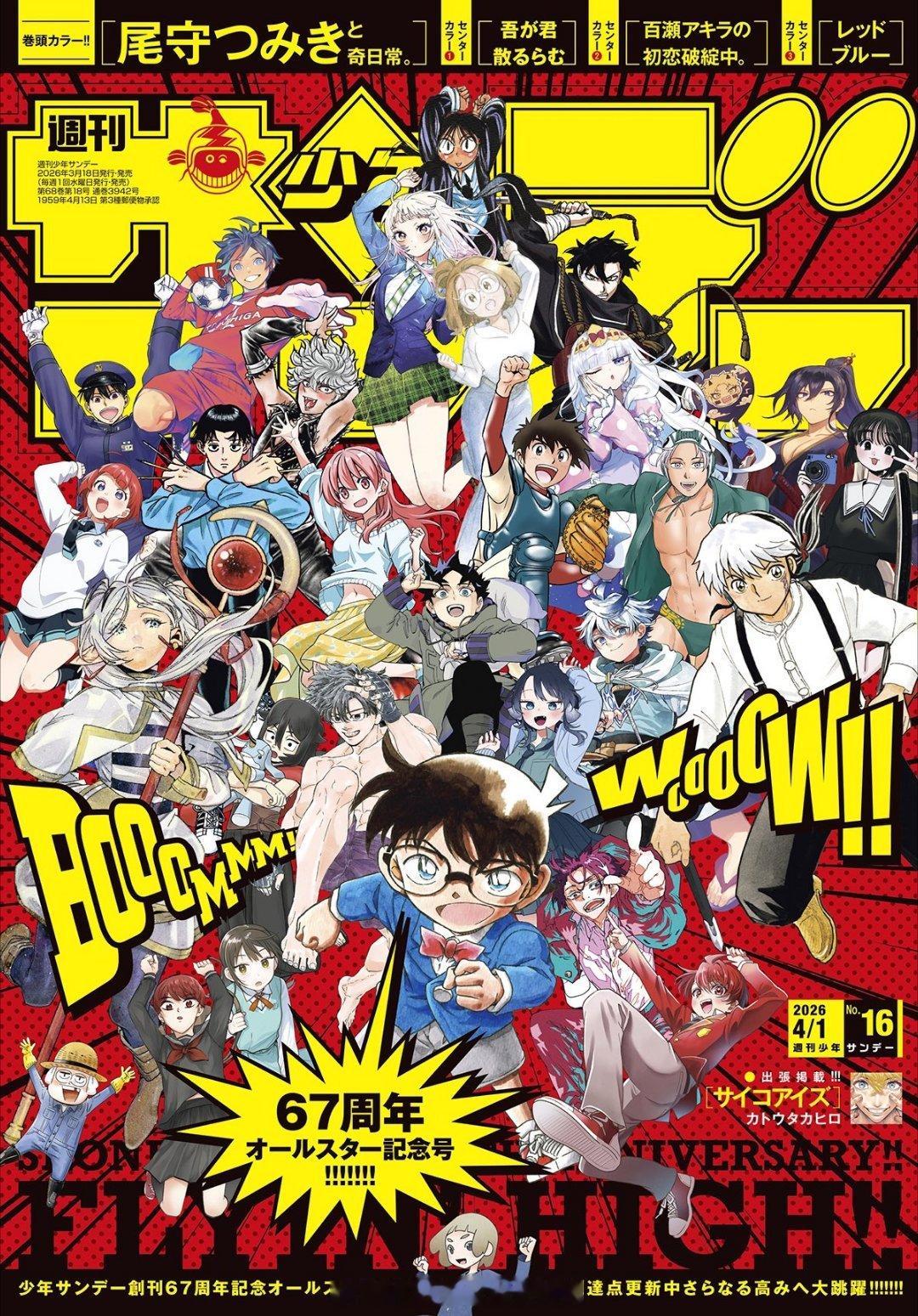 《周刊少年Sunday》创刊于1959年,2026年迎来创刊67周年,因此推出全明星纪念号,集结历代人气角色,封面集合了《周刊少年Sunday》旗下多部经典漫画的主角,《名侦探柯南》自1994年起在该杂志连载至今,是其最长寿、最具代表性的作品之一,因此在创刊纪念号中占据重要位置。名侦探柯南