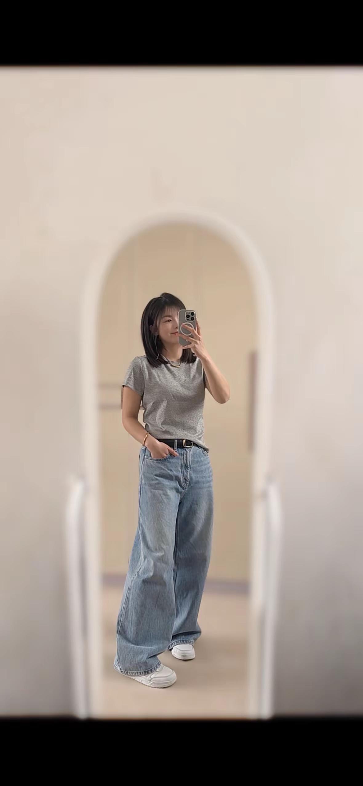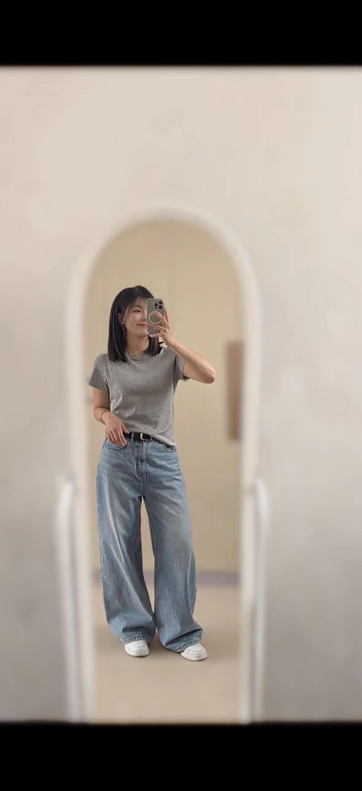 被问爆的短袖。白色灰色都是日常百搭款,怎么穿都不会出错,尤其是喜欢它肩部设计,圆