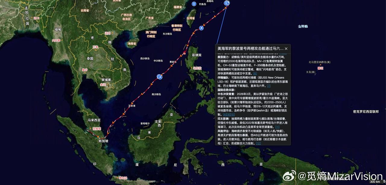 警报拉响!2500名美军陆战队进印度洋,伊朗的“复仇窗口”已打开? 觅熵卫星最新捕捉到:美军两栖攻击舰“的黎波里”号正穿越马六甲,即将进入印度洋。甲板上,搭载的是近2500名海军陆战队员。 德纳号的账还没清算,美军的“拳头”已经高调抵近家门。 摆在伊朗面前的是两道选择题: 是硬碰硬,在海上截杀这艘准航母,为德纳号雪耻? 还是沉住气,放他们进来,在自家地盘上演“瓮中捉鳖”? 硬打,伊朗确实有能力让美军“疼”——找准破绽,一击命中不是没可能。 但想彻底击沉它,就得突破航母战斗群的多层防御网,代价可能是难以承受的全面战争。 所以,真正的杀招应该是:把这两千多人放进来,让他们陷入人民战争的汪洋大海,让补给线变成死亡线—— 到那时,决定胜负的就不是导弹多先进,而是谁更不怕牺牲,谁更能承受消耗。 这2500人,是“拳头”还是“诱饵”? 老铁们,你们怎么看? Source: X