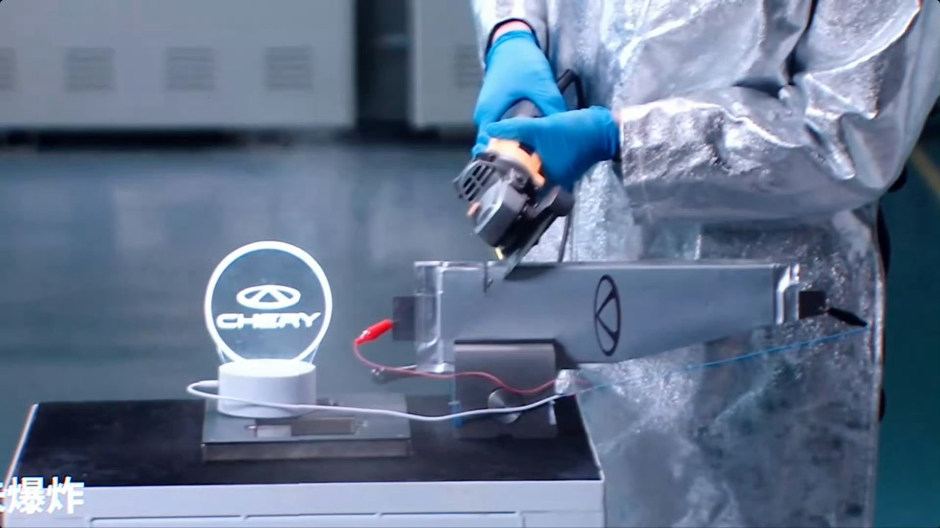 更让我惊讶的是图1奇瑞固态电池的安全测试居然是工程师手拿角磨机直接切割相当硬核 但也代表奇瑞固态电池超强的安全性