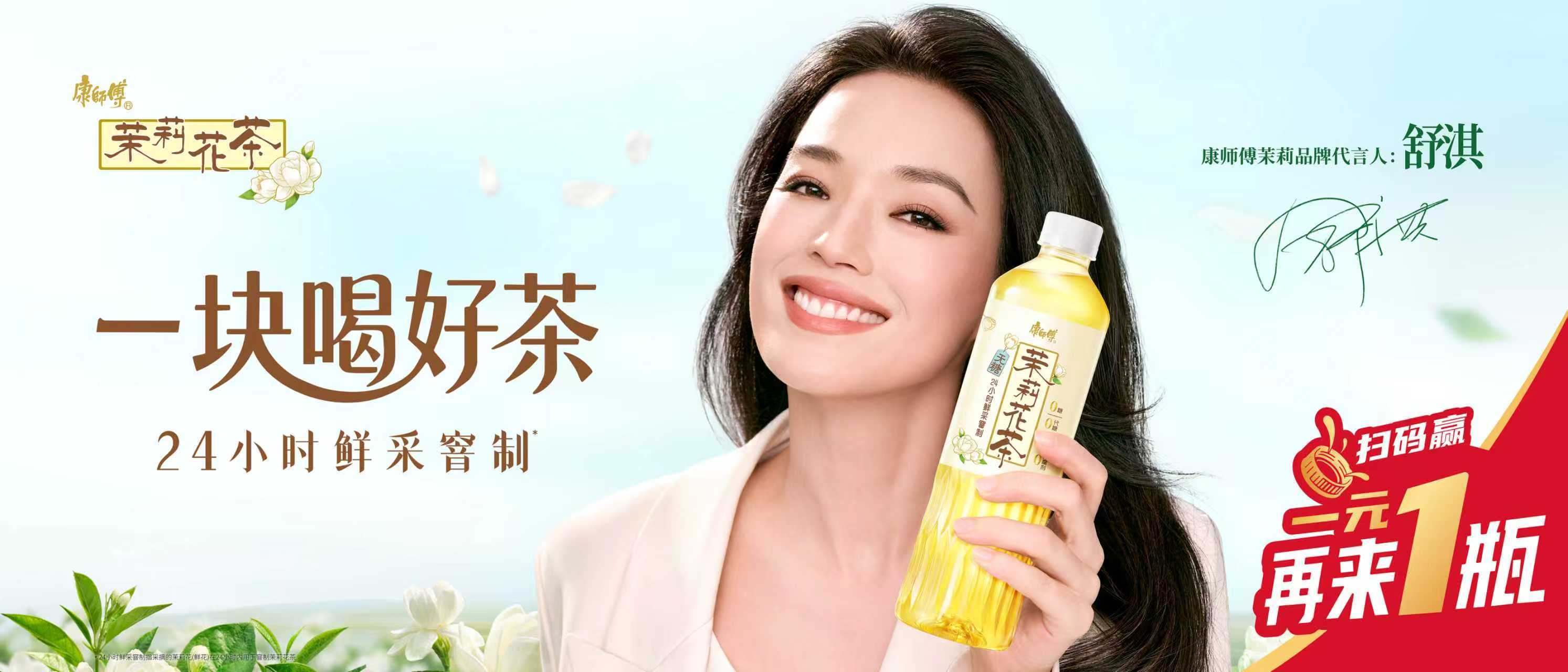 当i人和e人一块喝茶 茉莉不争不抢,却自成风景;舒淇不慌不忙,却自带光芒。康师傅茉莉花茶,每一口清香如初绽,喝出同款从容。 康师傅茉莉每一口清香如初绽