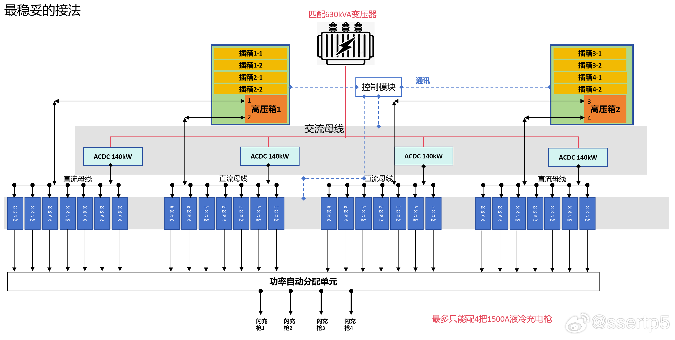 第一种是我认为最激情的接法,也就是232串4并。其实难度倒不大,主要是为了稳定bms要用三级架构且算力足够,而且还要有直流汇流柜。我看这个闪充的储能柜高压箱比普通储能柜高压箱大了2.5倍,因此就有了这种感觉,它俩可能一开始就是并联的,或者说具备这个能力。这样做其实没啥问题