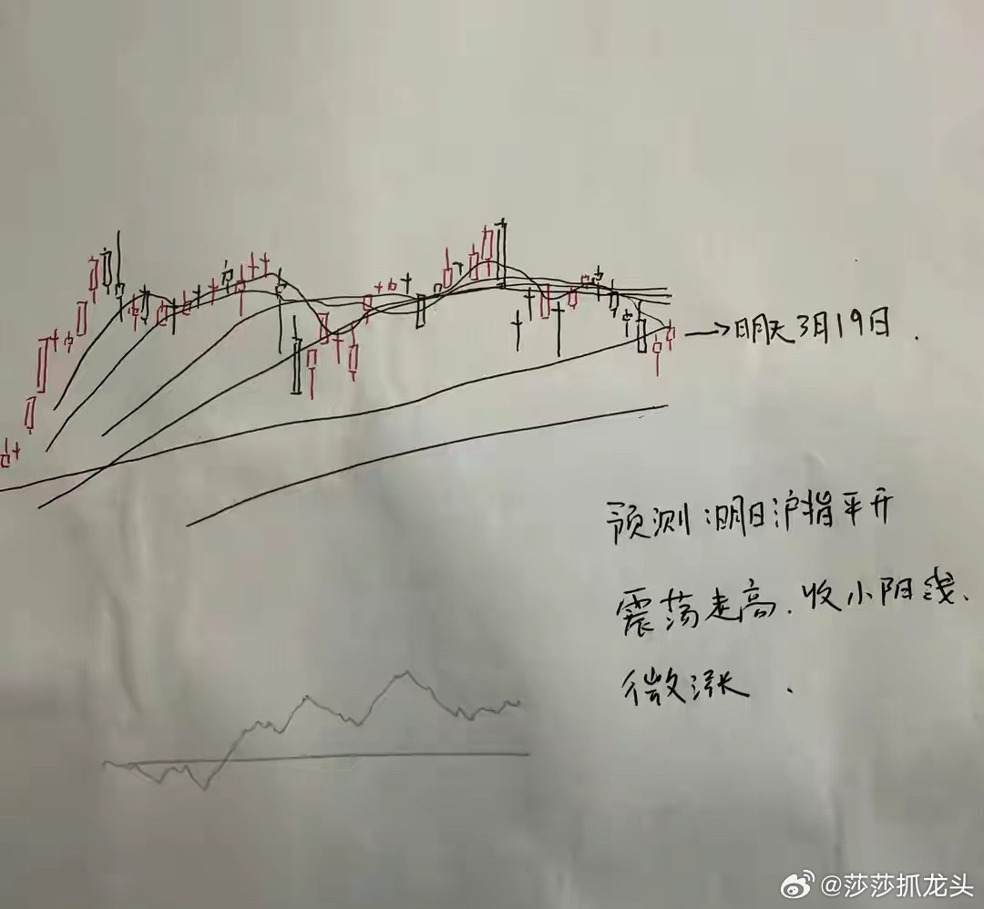 所以综合以上三点分析,对于明天市场的走势,莎莎维持相对乐观的判断,我认为明天沪指有望走出小幅微涨的反弹小阳十字星。那么明天A股到底怎么走?大家请看图四关于明天走势的手绘预测图