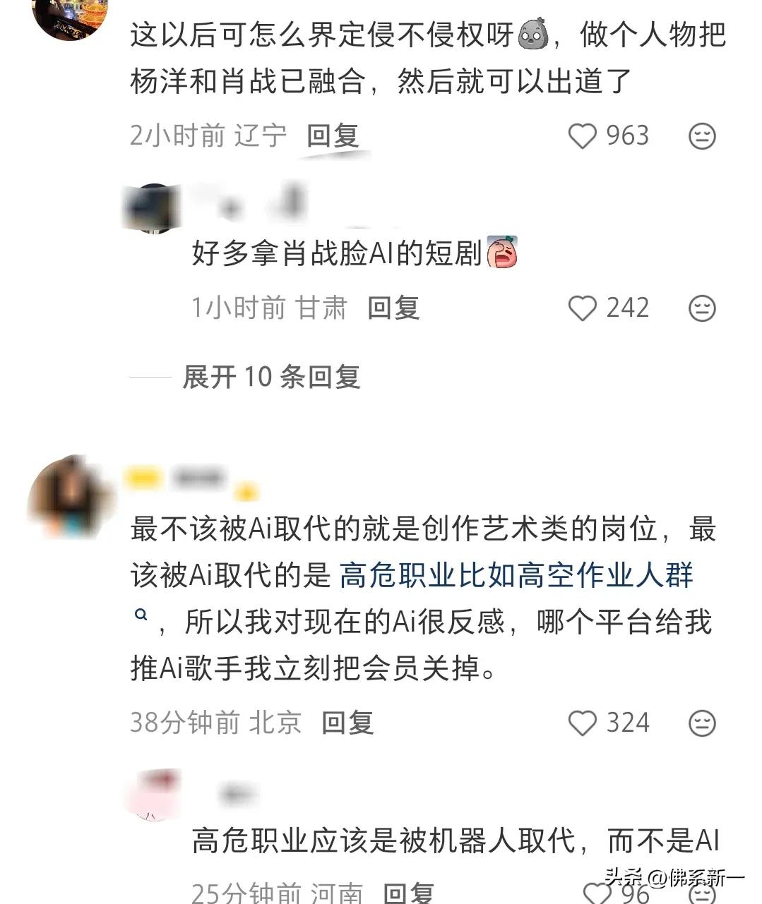 妈呀,长得帅和性转美也不是肖战和蒋欣的错吧[捂脸] ai直接逮着两人的脸薅羊毛啊,肖战这双丹凤眼直接成了男版ai脸的模板了,一刷ai短剧直接出现几十个一模一样的。 还有以蒋欣《甄嬛传》华妃为模板性转的男角色爆火之后,网络上直接以华君为ip生成爱豆版、型男版、飞扬跋扈版,甚至因为有人太爱华君,直接跑到蒋欣评论区催婚,让她和叶祖新复合结婚生子,还必须是儿子的留言。 我的天啦,不是如今42岁的她,有钱有颜,也多次在公开场合说过不将就,不结婚,父母也表示尊重支持,怎么因为一个ai性转就被催生影响生活啊! 还有3月18日耀客公开的ai男演员完全和翟子路一样的脸,真要ai取代真人演员啊。 融合男女明星的脸ai就能出道,ai发展还是越来越魔幻了! 你们能接受ai演员吗?