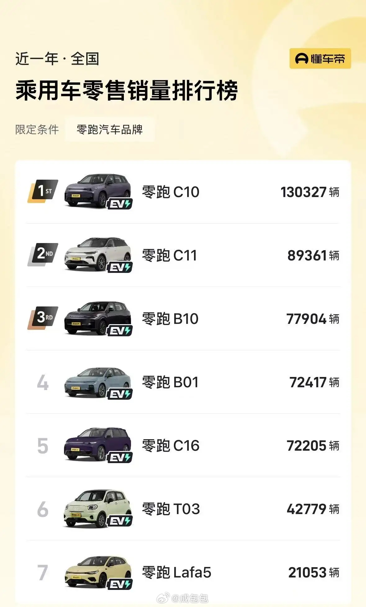 这个目标,该说不说确实有点狂的没边,但是零跑确实还有牌可以打首先是产品矩阵的爆发,大家有没有发现零跑的增长并没有特别依赖某款车型,或者所谓的大爆款图5,比如MONA03 之于小鹏,ES8之于蔚来,而是相对均衡。2026年在B、C平台基础上,A、D平台也开始要发力了。A10,A05 毫无疑问是继续扩大规模的走量产品,而D19,D99这一类主打高端市场的产品也必将改善整体毛利率。