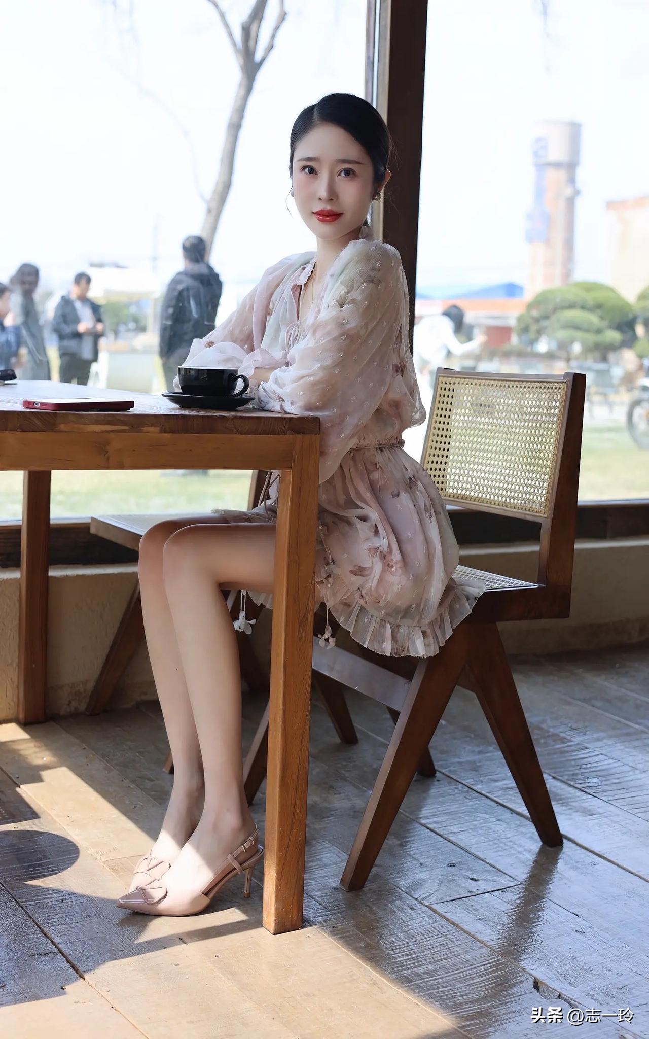 优雅下午茶时光,粉色连衣裙与咖啡的完美搭配💕